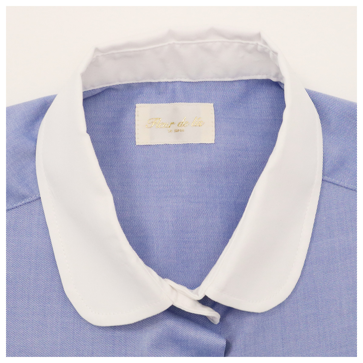 ハイカウントタイプライターコットン丸つけ襟 92 ブルー【Fleur de lis(フラデリ)】