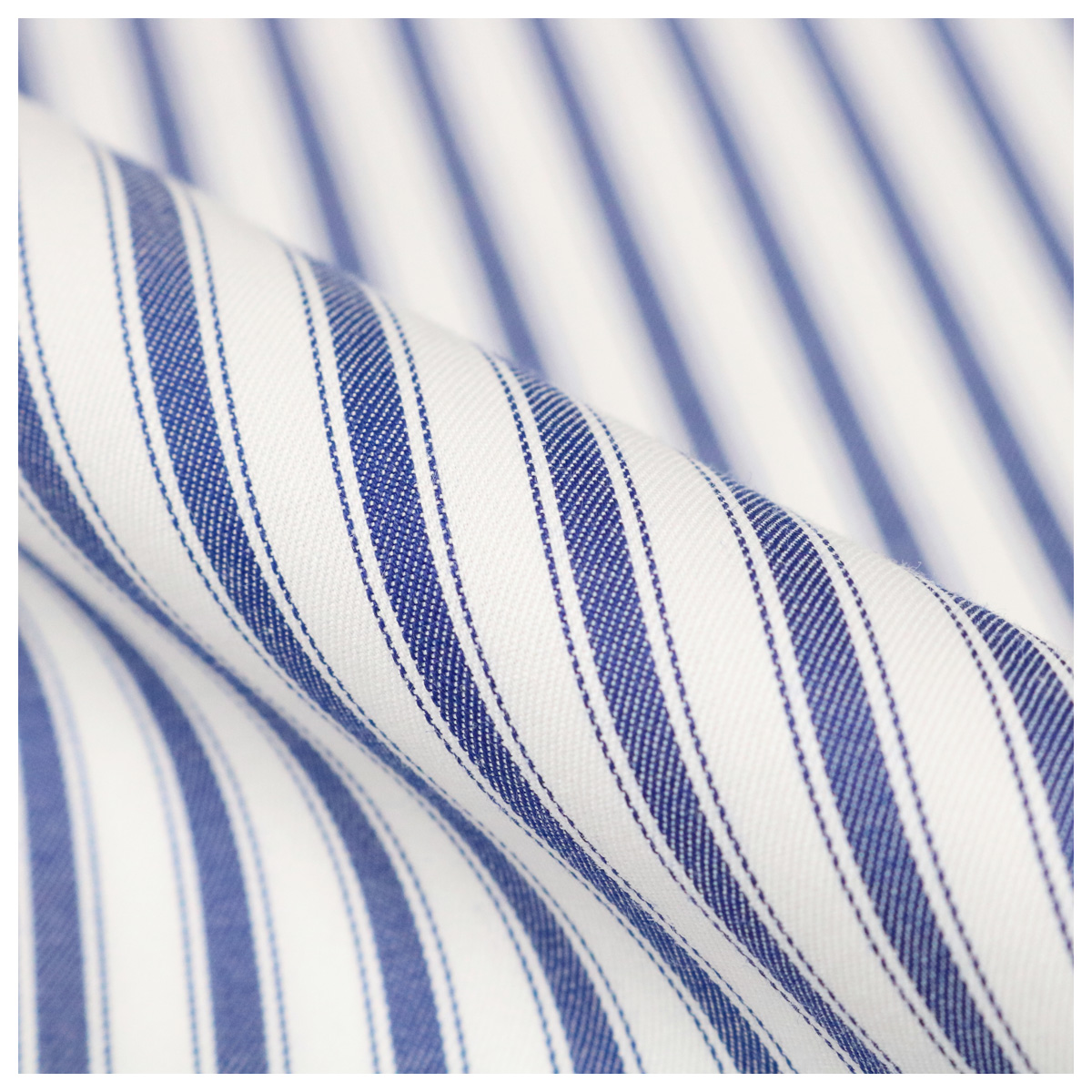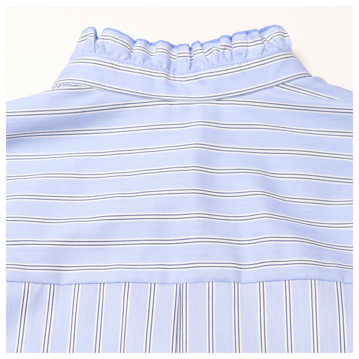 パール釦フリルネックストライプブラウス 911 ホワイト×ブルーストライプ【Fleur de lis(フラデリ)】