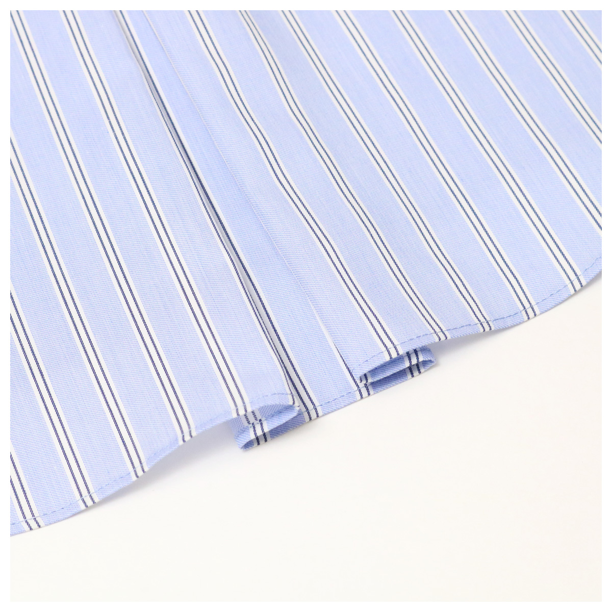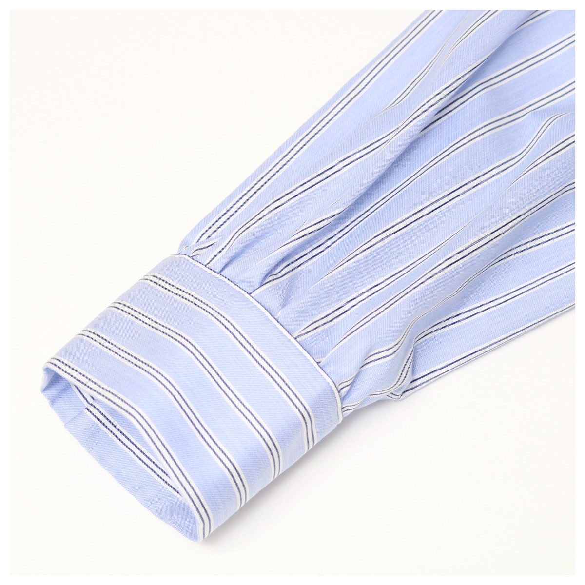 パール釦フリルネックストライプブラウス 922 ブルー系トリプルストライプ【Fleur de lis(フラデリ)】
