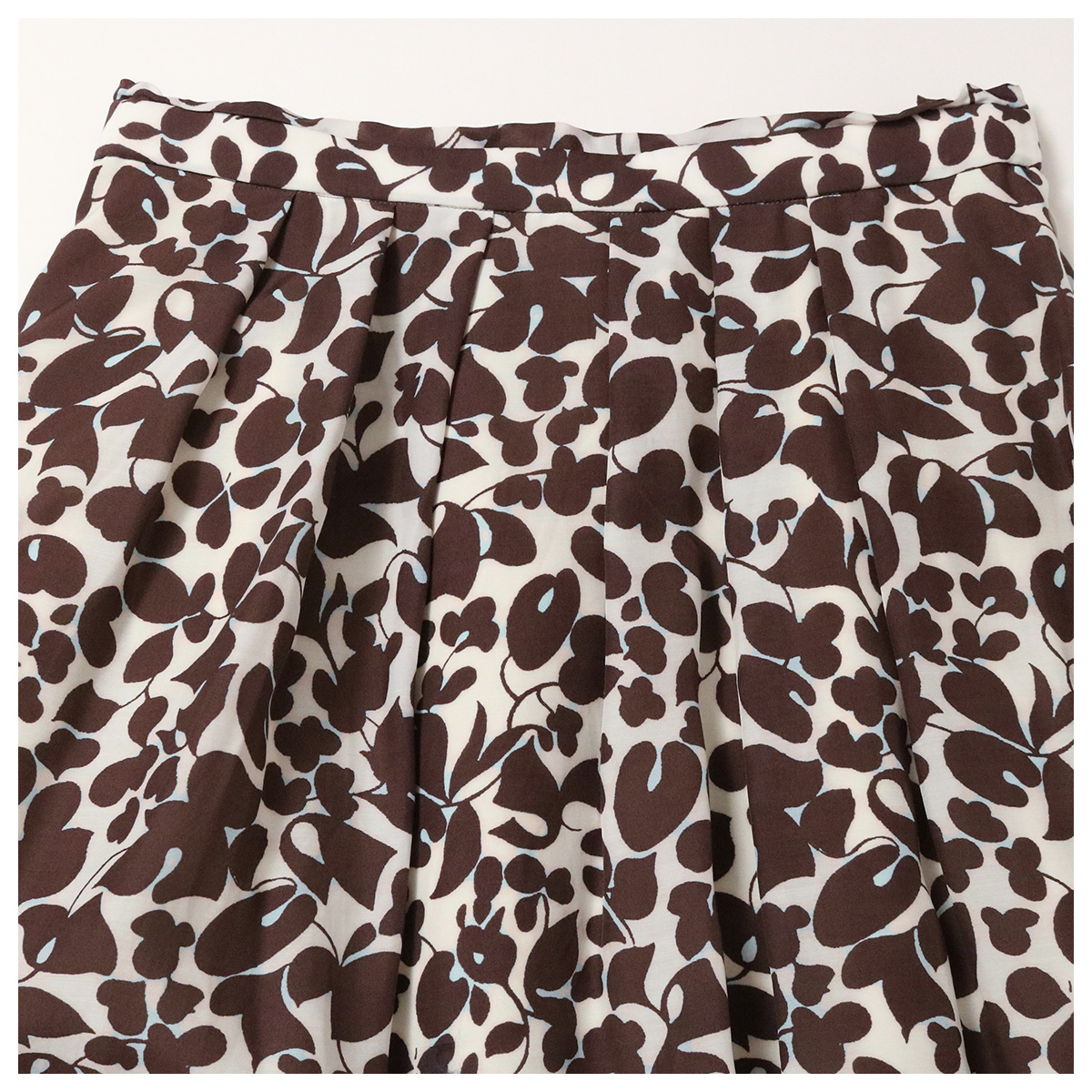 花柄プリントタックフレアスカート A ホワイト×ブラウン系【BRAHMIN(ブラーミン)】