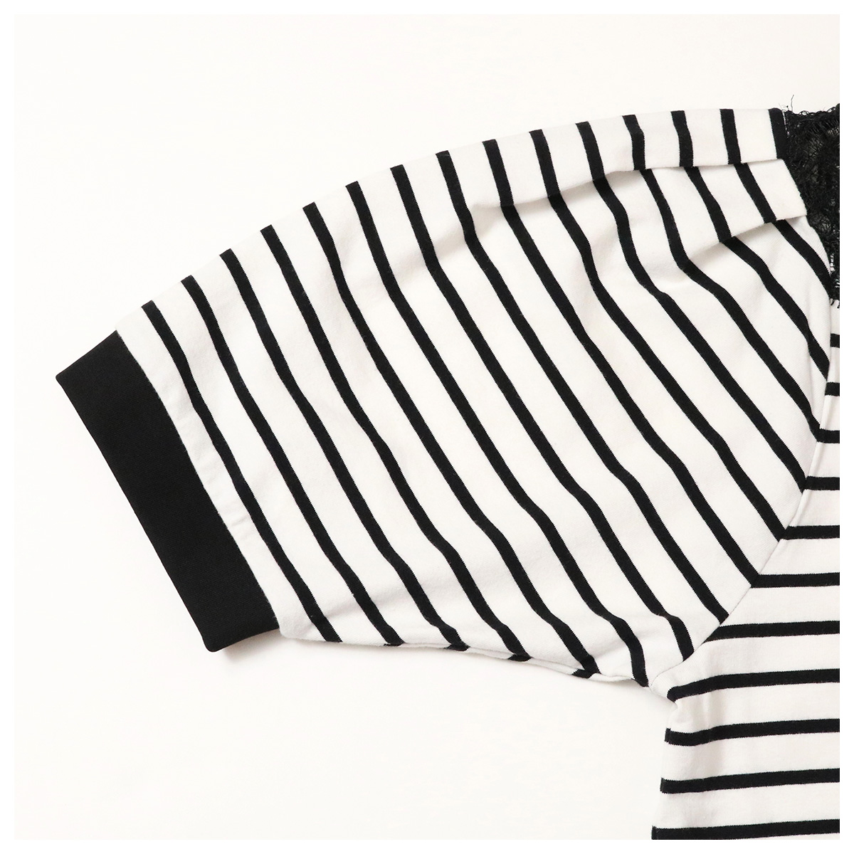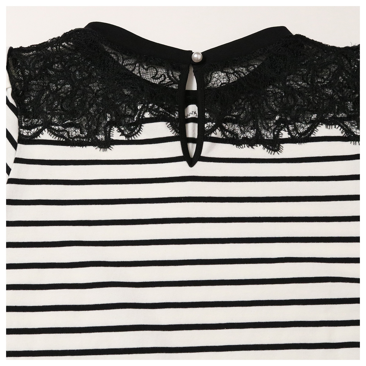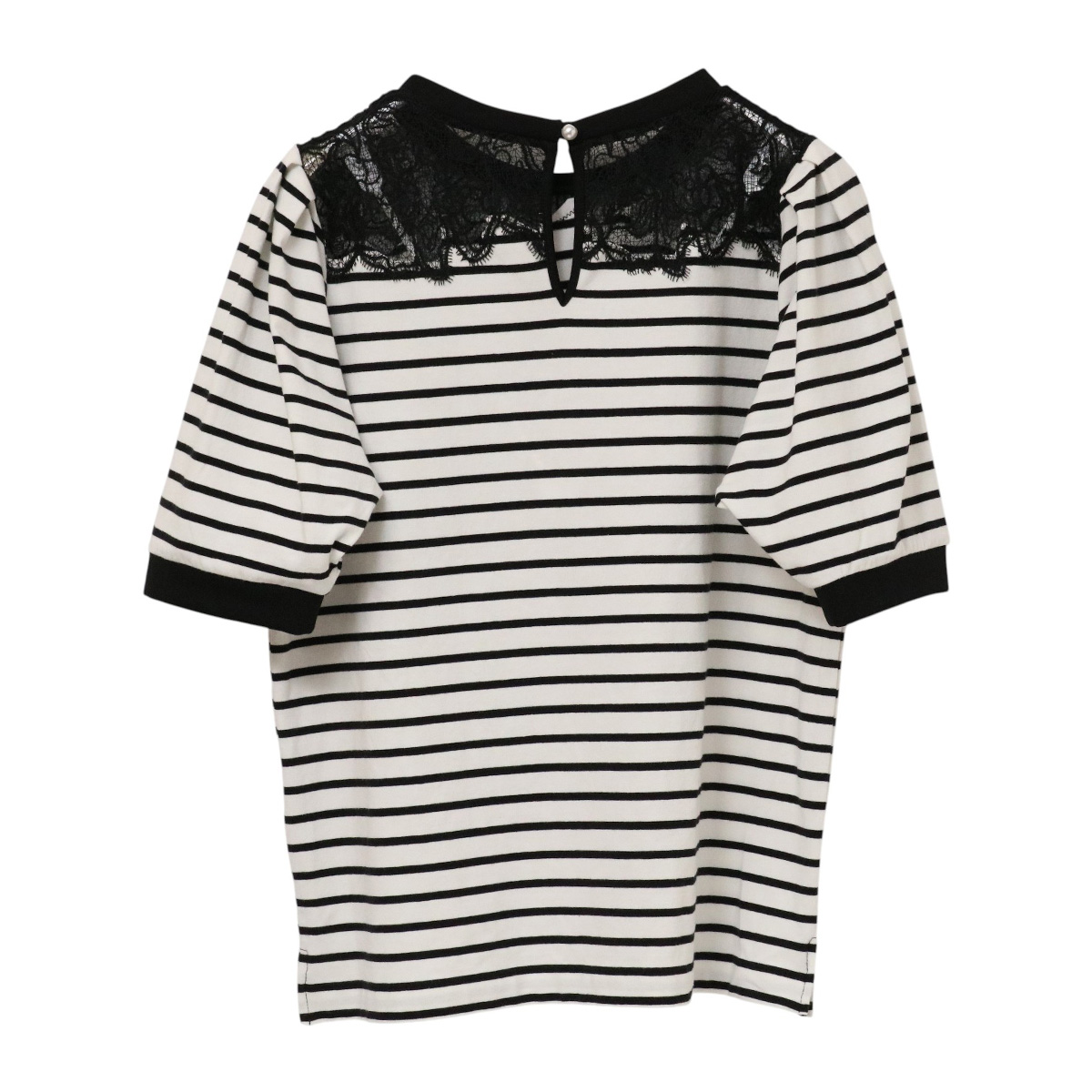 タック袖レーススムースプルオーバー D オフホワイト×ブラック【BEATRICE(ベアトリス)】