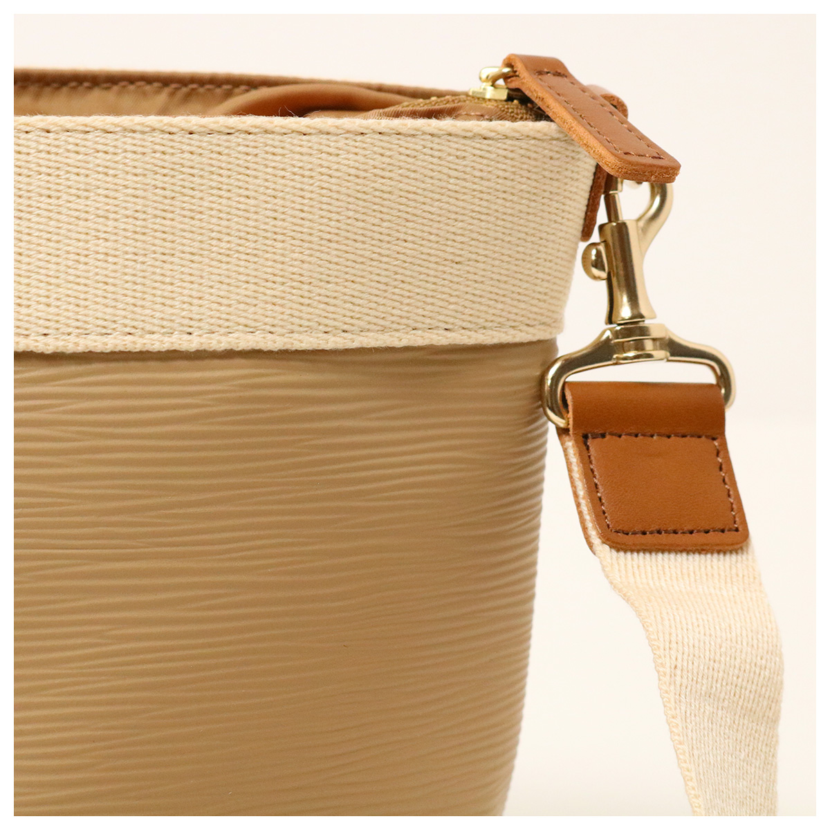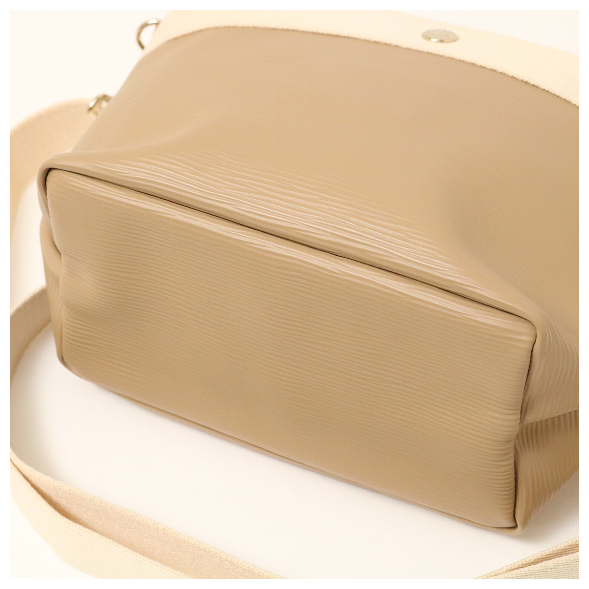 PVC素材にさざ波のような型押しを施した、クールな表情が人気のシリーズ。傷や汚れが目立ちにくく軽量で、デイリーユースに最適。