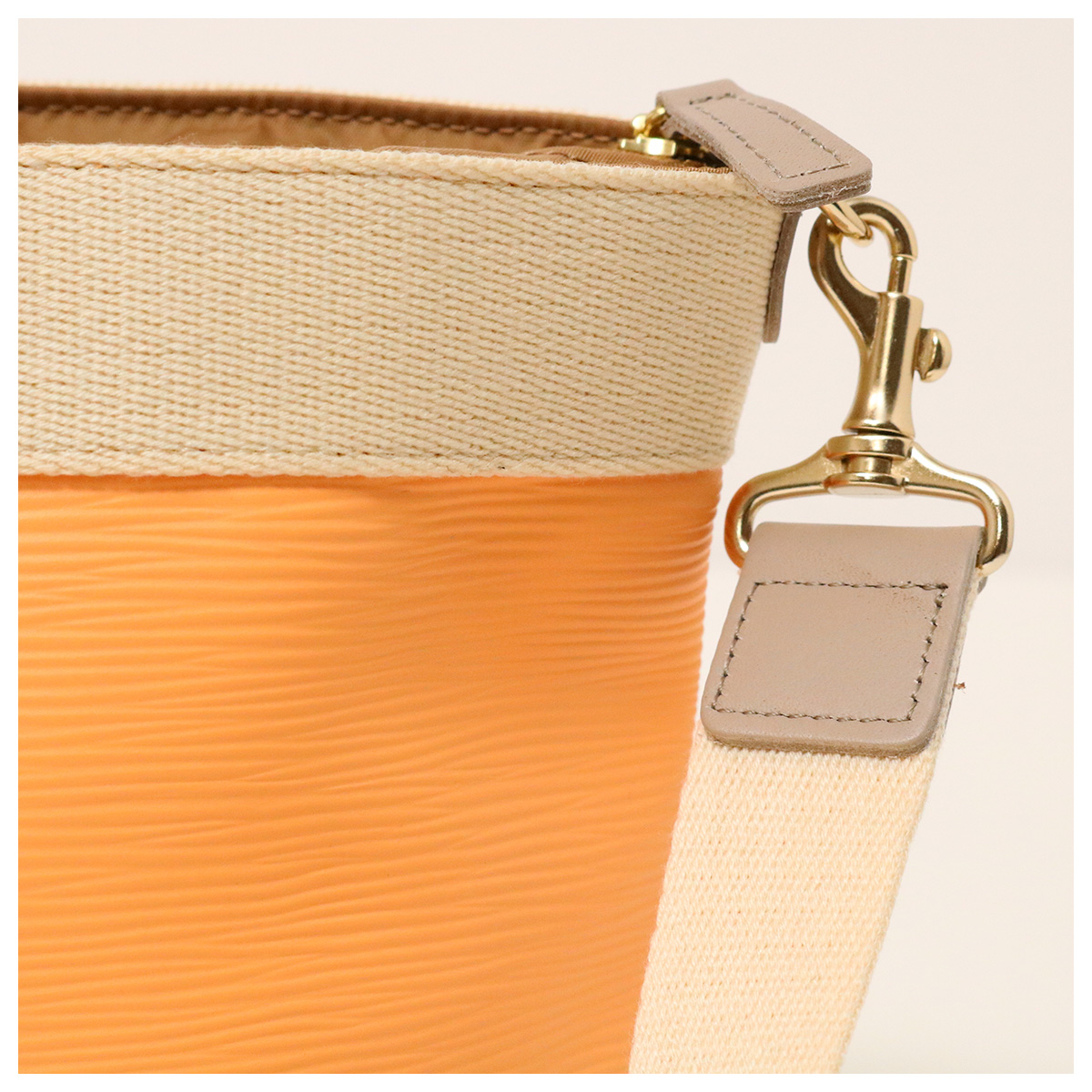 PVC素材にさざ波のような型押しを施した、クールな表情が人気のシリーズ。傷や汚れが目立ちにくく軽量で、デイリーユースに最適。
