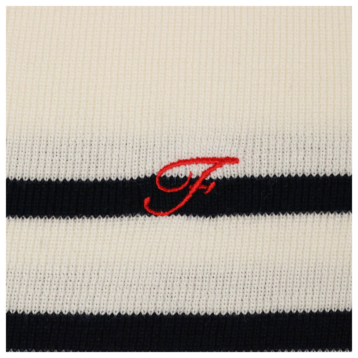 メリノウールクロップドニットトップス 01×91 オフホワイト×ネイビー【Fleur de lis(フラデリ)】