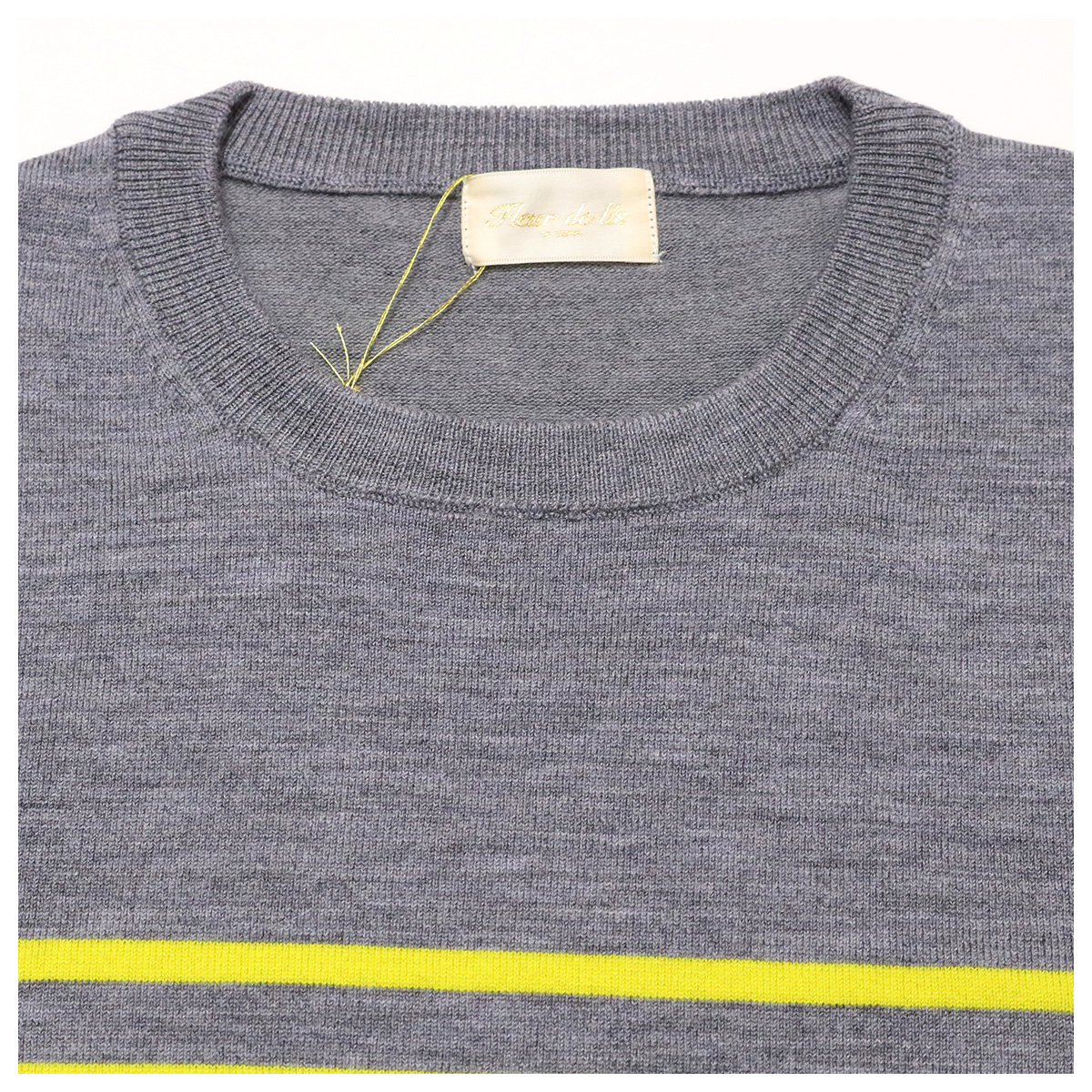ウール混クルーネックボーダーニット 17×23 グレー×イエロー【Fleur de lis(フラデリ)】