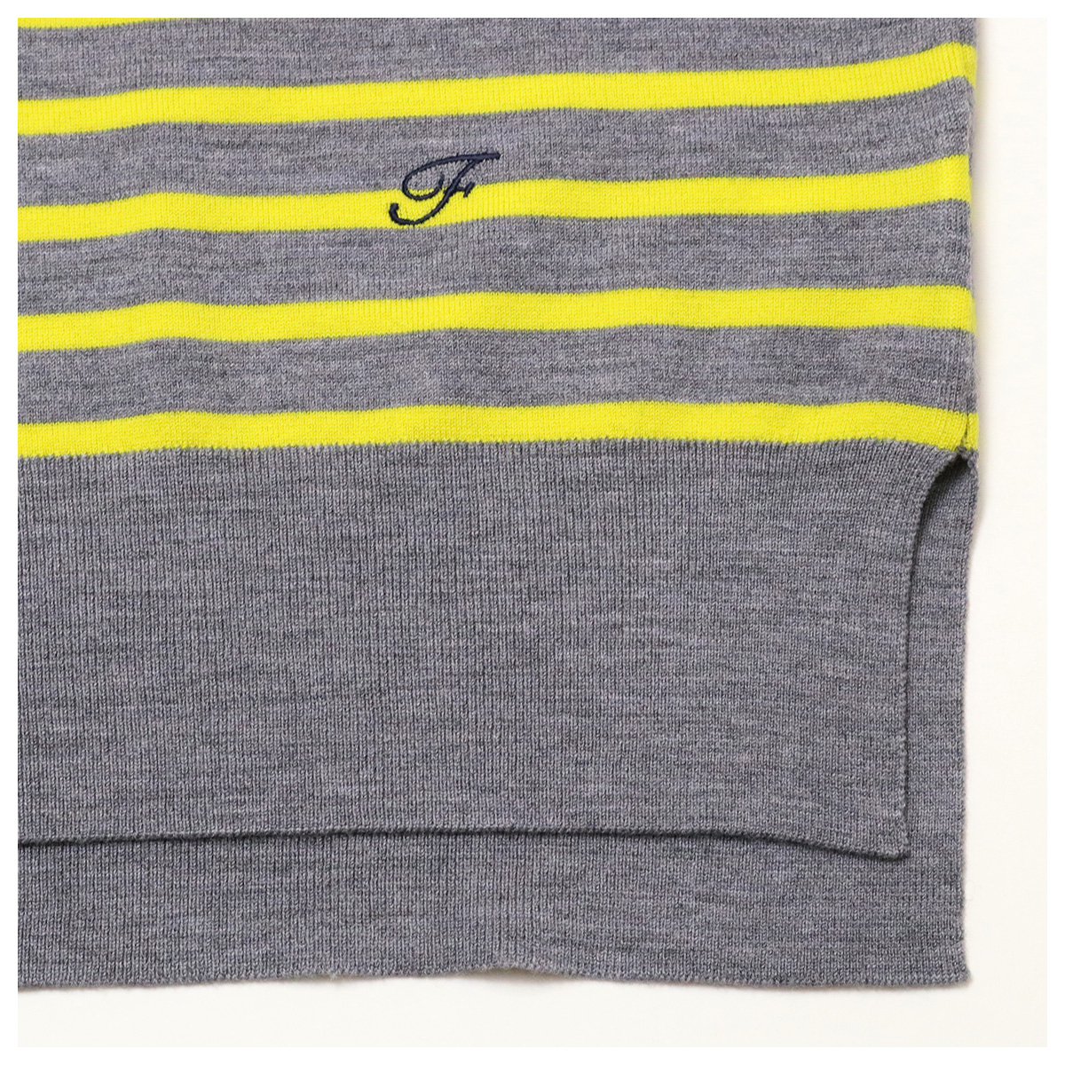 ウール混クルーネックボーダーニット 17×23 グレー×イエロー【Fleur de lis(フラデリ)】
