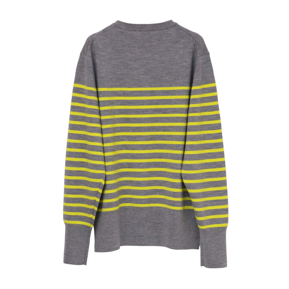 ウール混クルーネックボーダーニット 17×23 グレー×イエロー【Fleur de lis(フラデリ)】