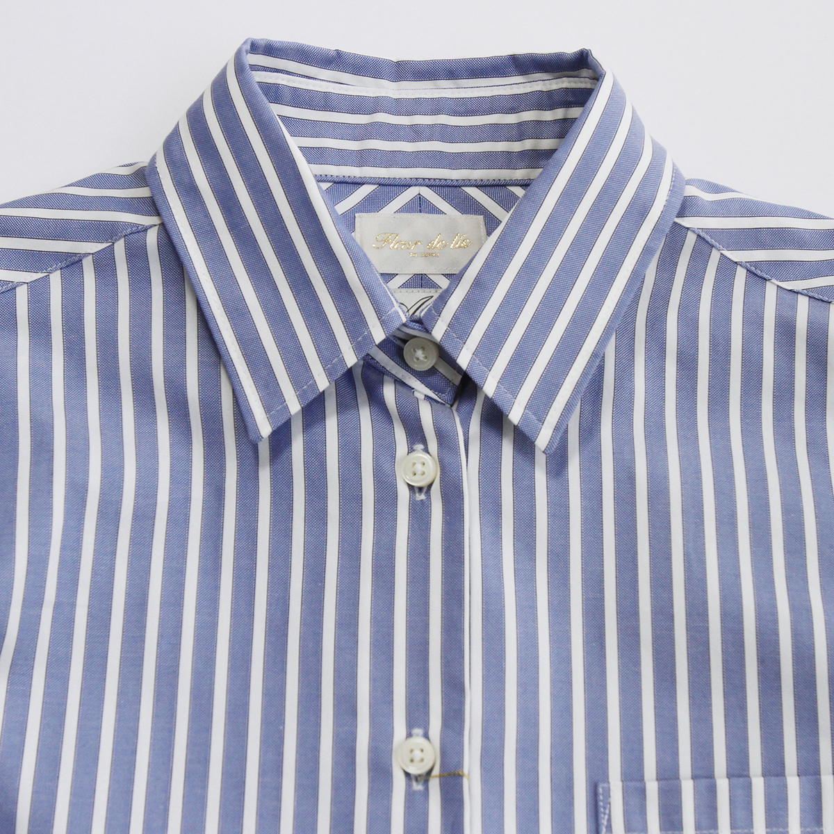 ALBINI七分袖シャツ 51 ライトブルーストライプ【Fleur de lis(フラデリ)】