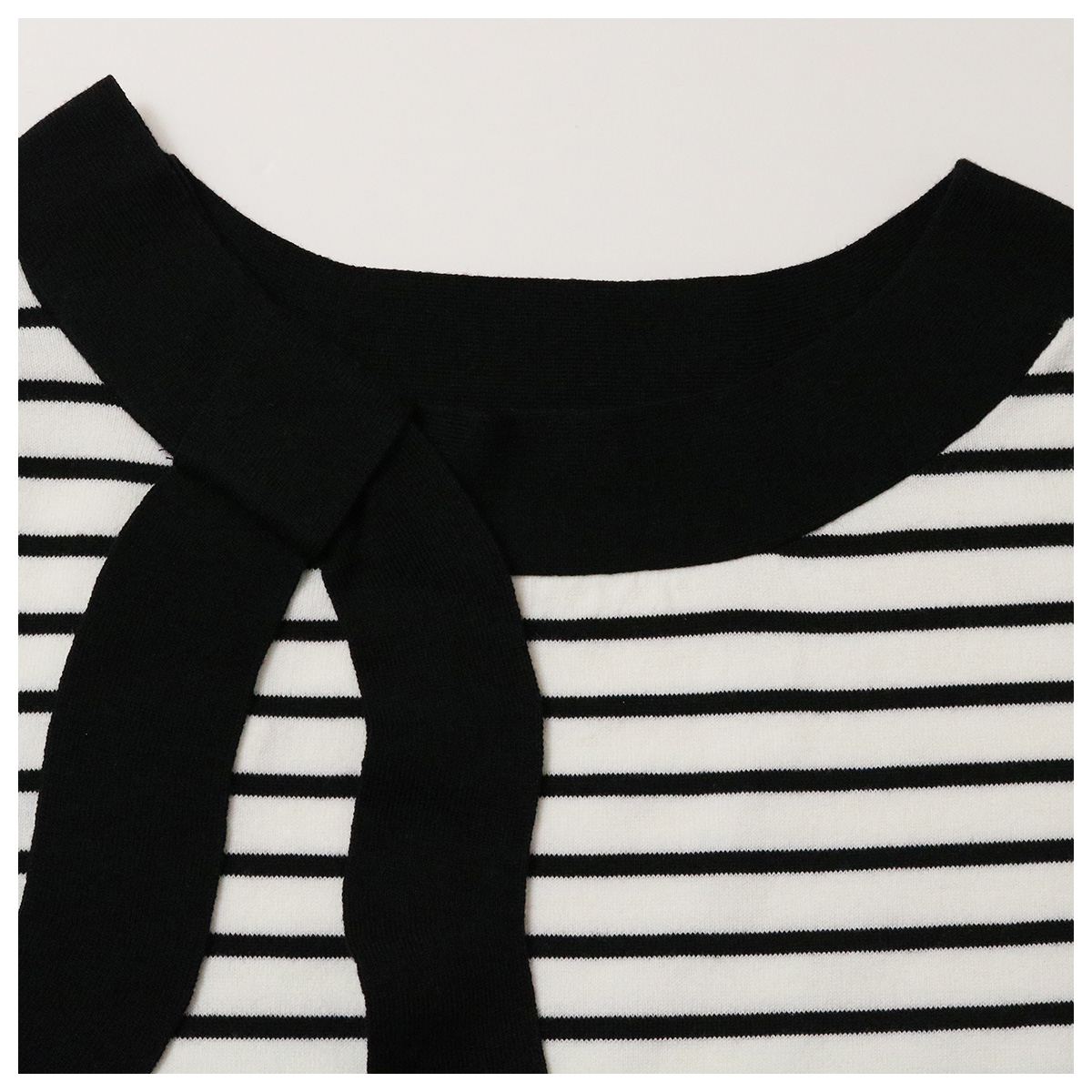 ボートネック配色リボンニット D オフホワイト×ブラック【BEATRICE(ベアトリス)】
