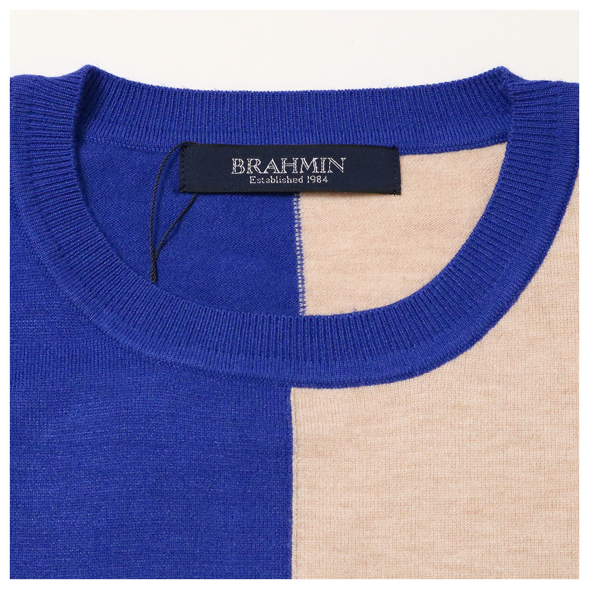 BRロゴ インターシャニットプルオーバー B ベージュ×ブルー【BRAHMIN(ブラーミン)】