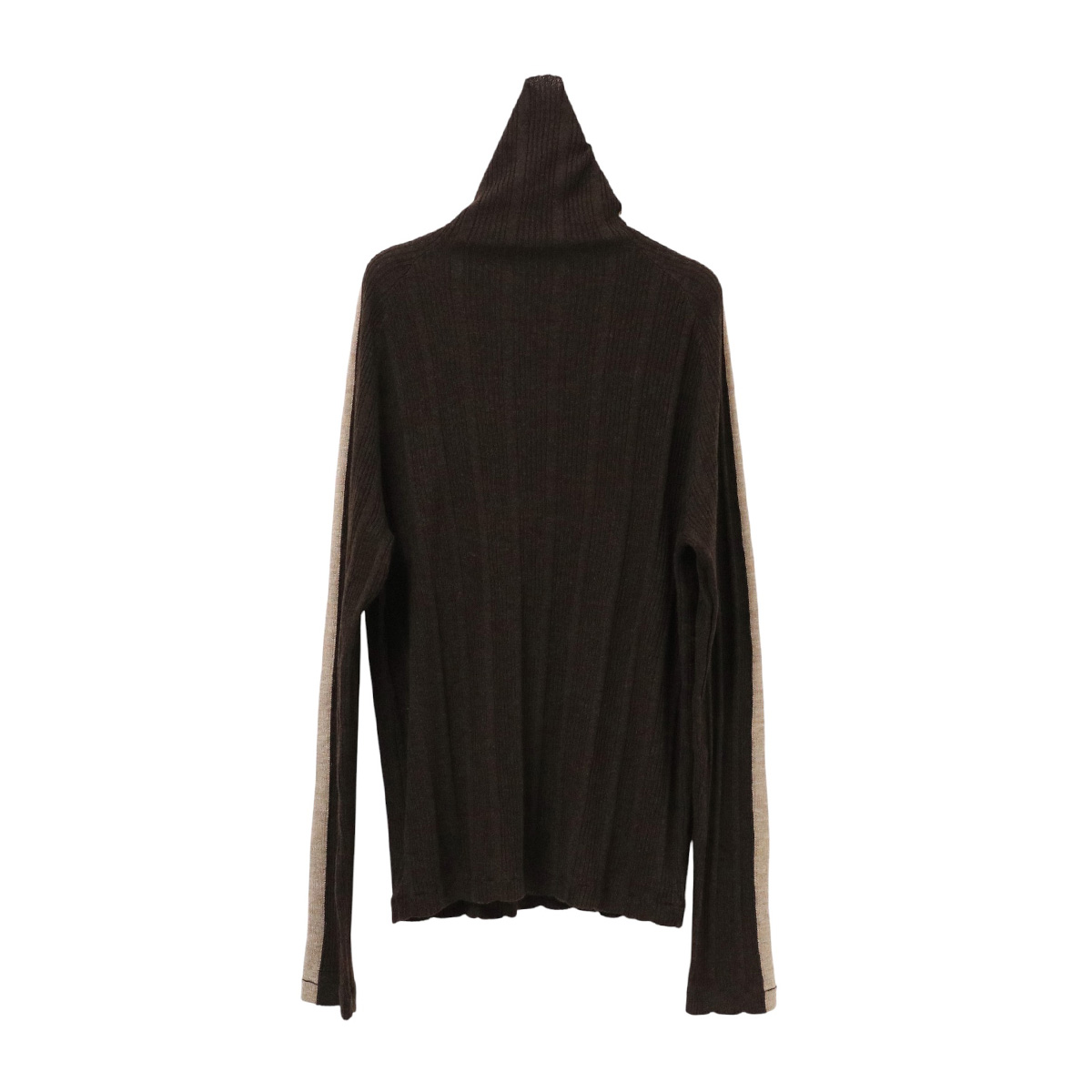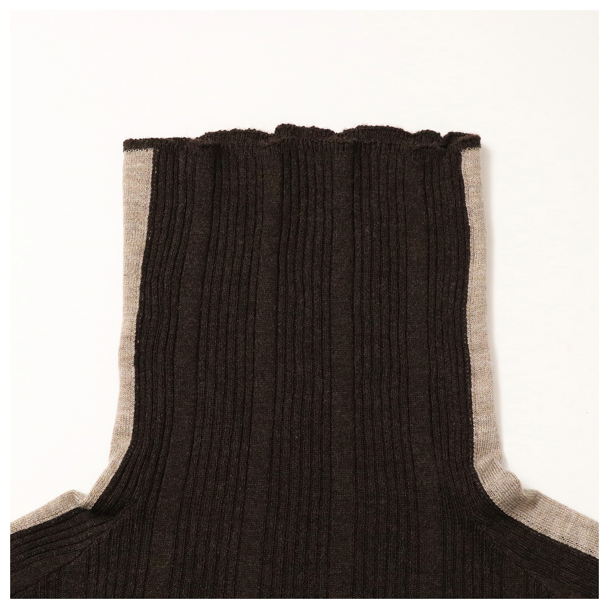 サイドラインタートルネックマルチリブニットトップス BROWN ブラウン【Pauline Bleu(ポリーヌブロー)】