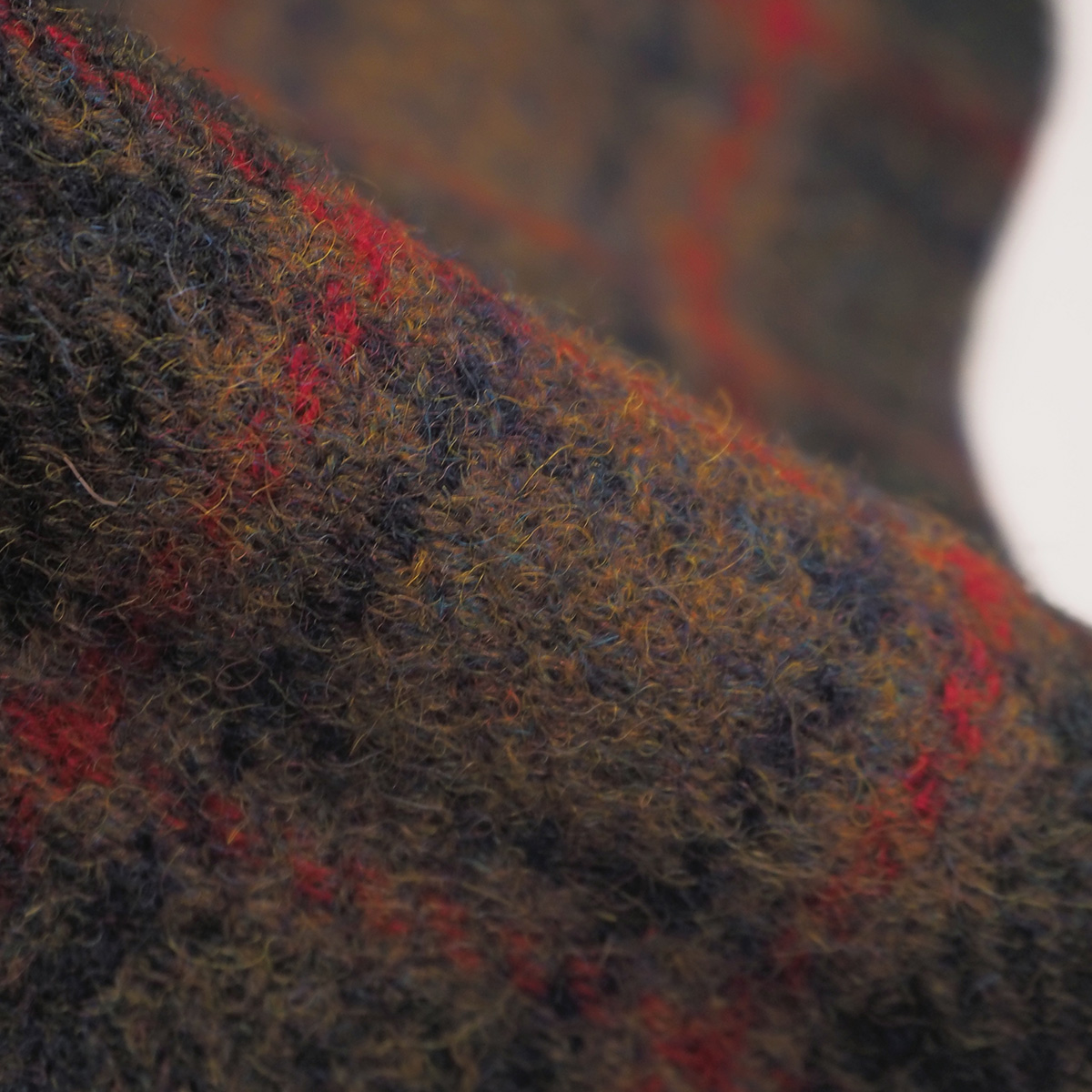 未加工の羊毛から染色、紡績を行い、織り、仕上げまでの全工程を一貫して行う希少なツイードです。