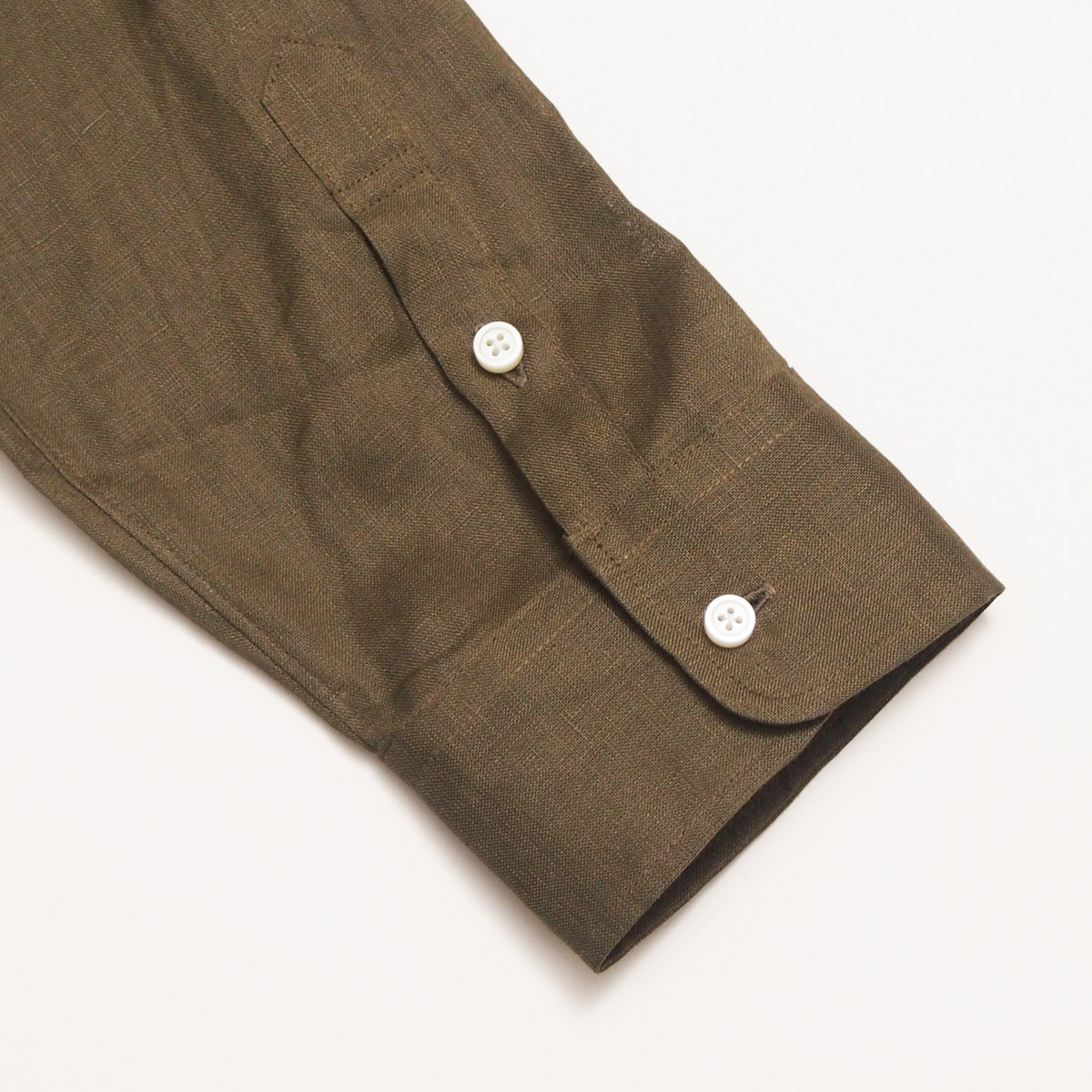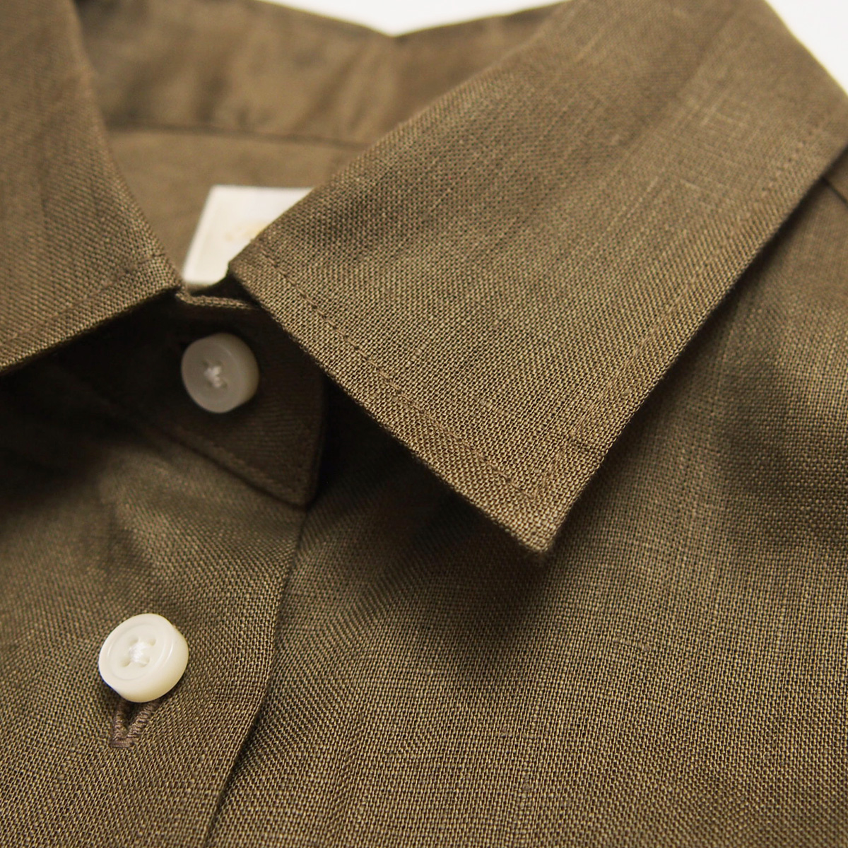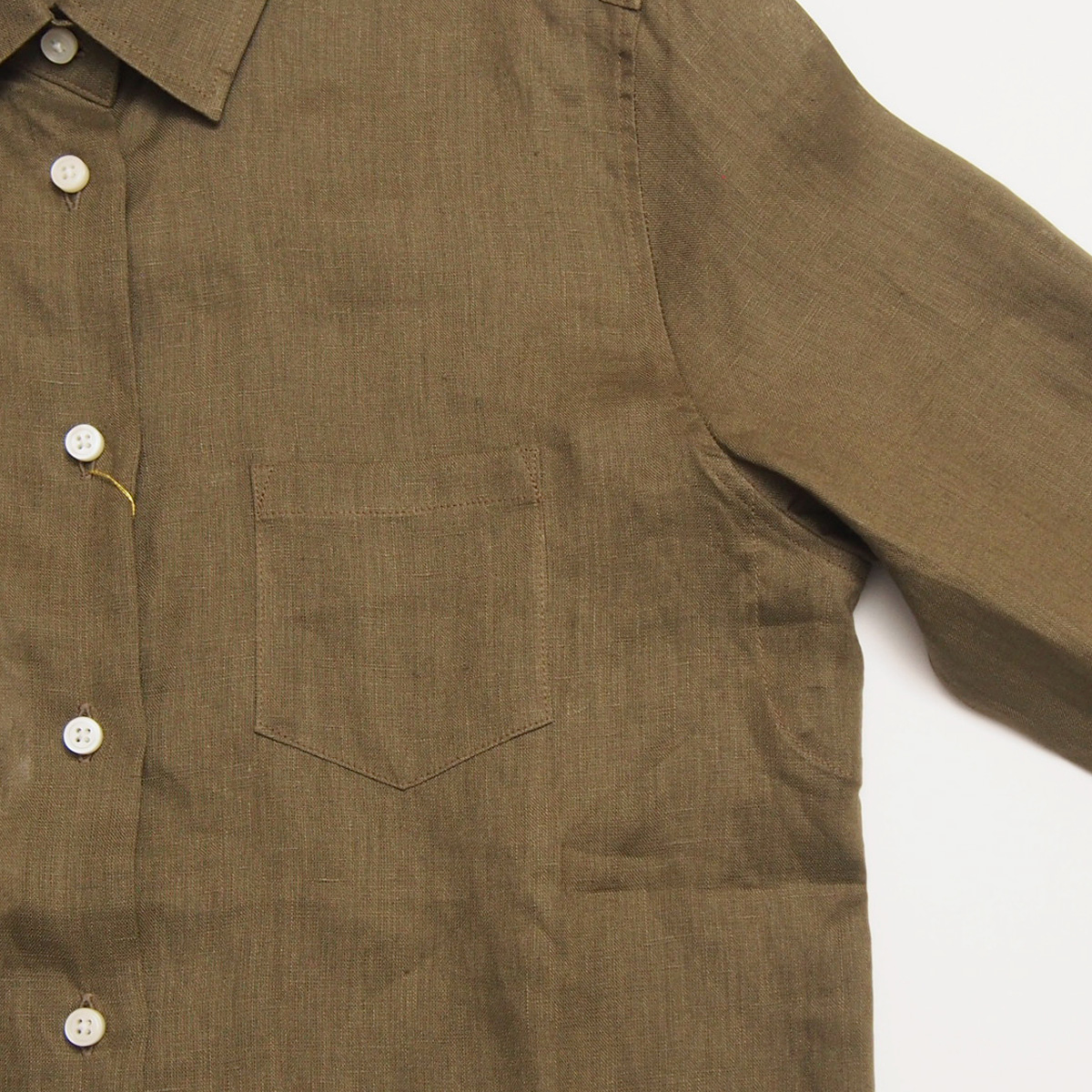 ハードマンズリネン角襟7分袖シャツ 015 カーキ【Fleur de lis(フラデリ)】