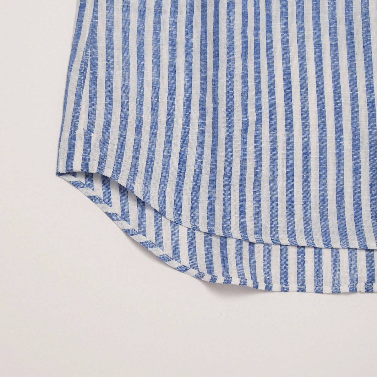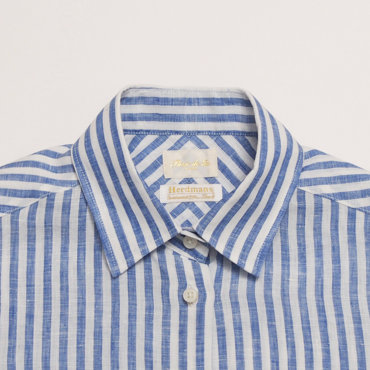 ハードマンズリネン角襟7分袖シャツ 543 ブルーストライプ【Fleur de lis(フラデリ)】