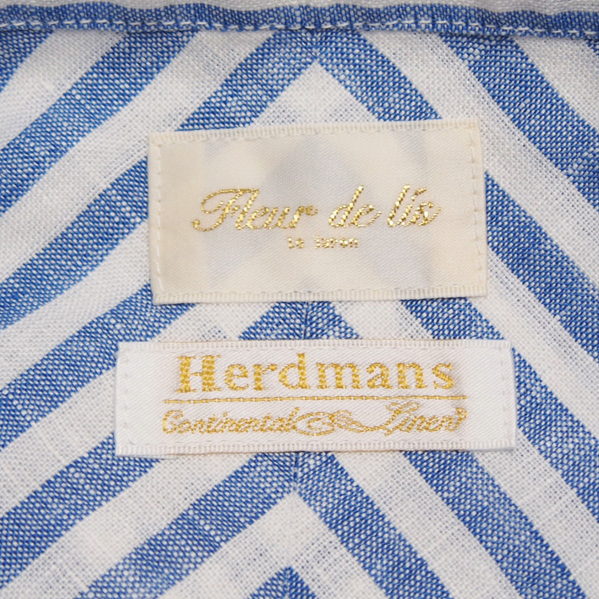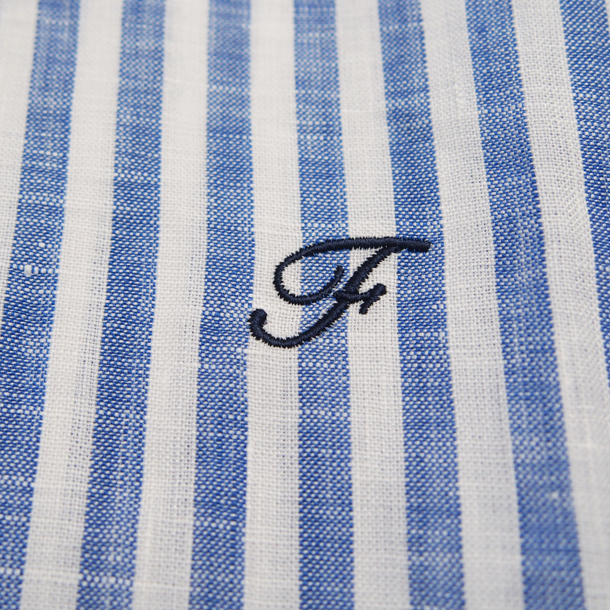 コットンストライプ丸つけ襟 THOMAS MASON社ファブリック 021 ブルーストライプ【Fleur de lis(フラデリ)】