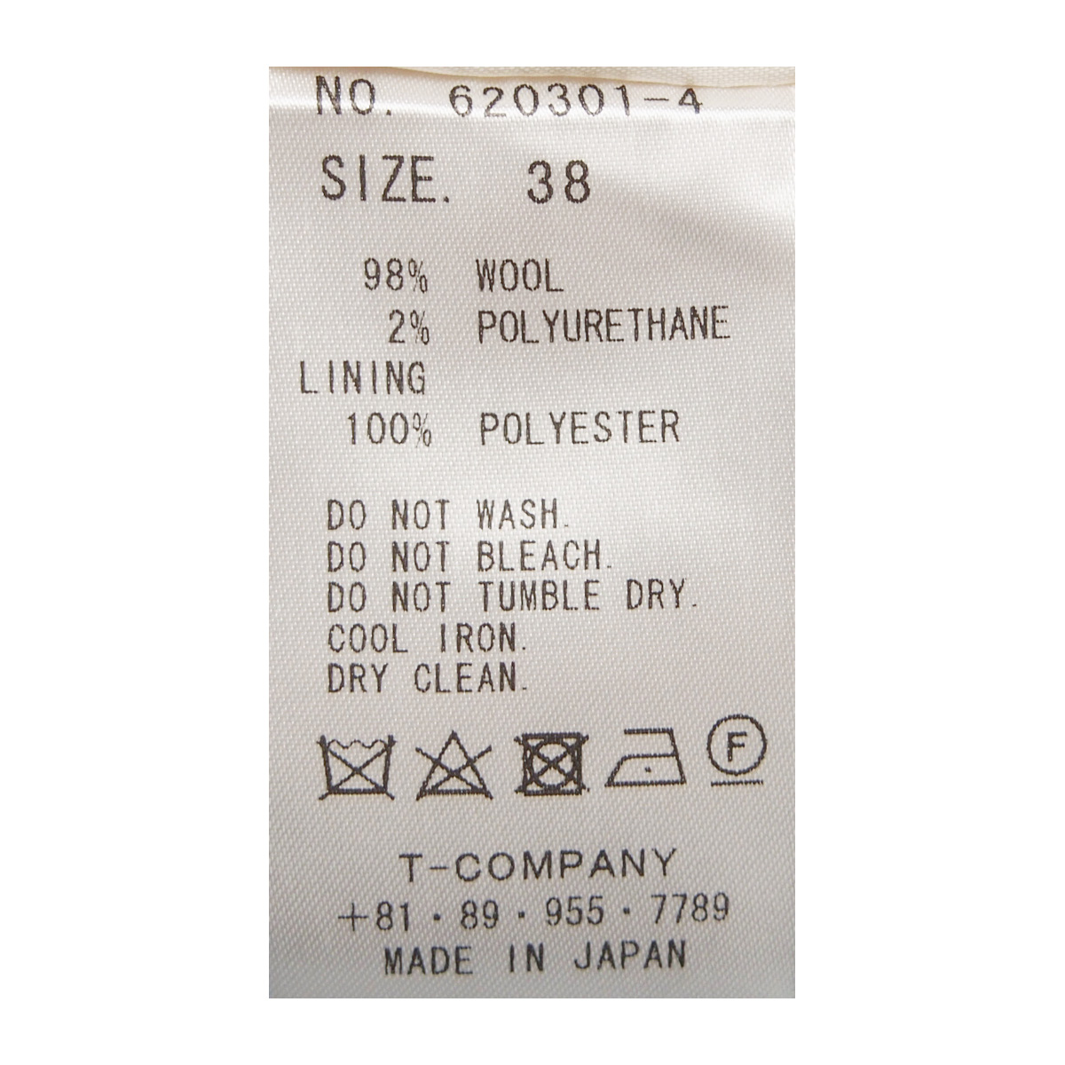 表地:ウール 98%、ポリウレタン 2%