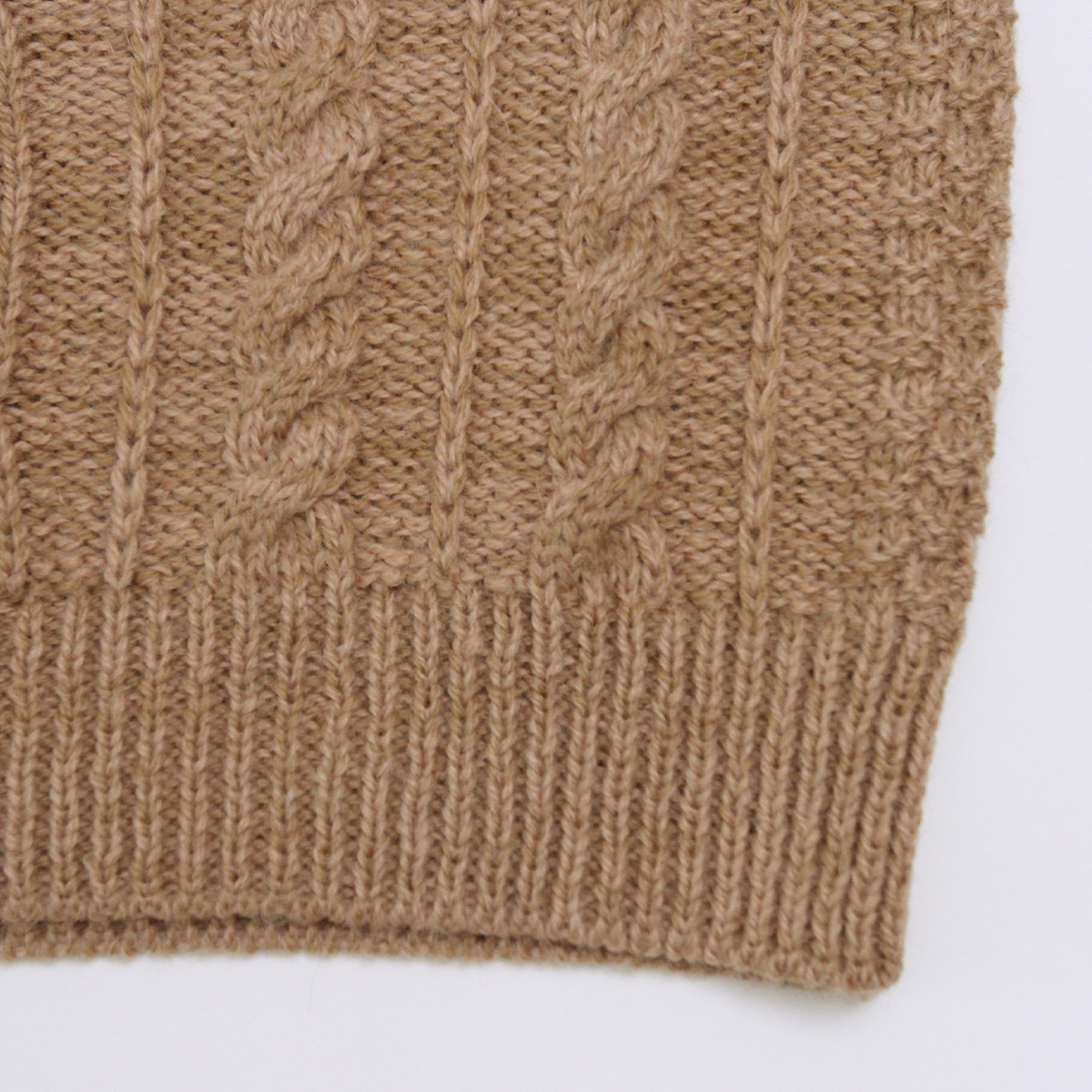 素材には英国製の100%ナチュラル繊維のシェットランドウールを使用し、手編み機による特殊で伝統的なハンドフレーム手法を守り続けることで品質の高いニット製品を世に送り出している。