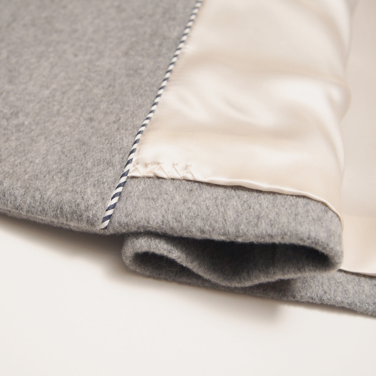 ウールにはない「ぬめり」のある感触で、カシミヤならではの上品な光沢感としなやかさが特徴。