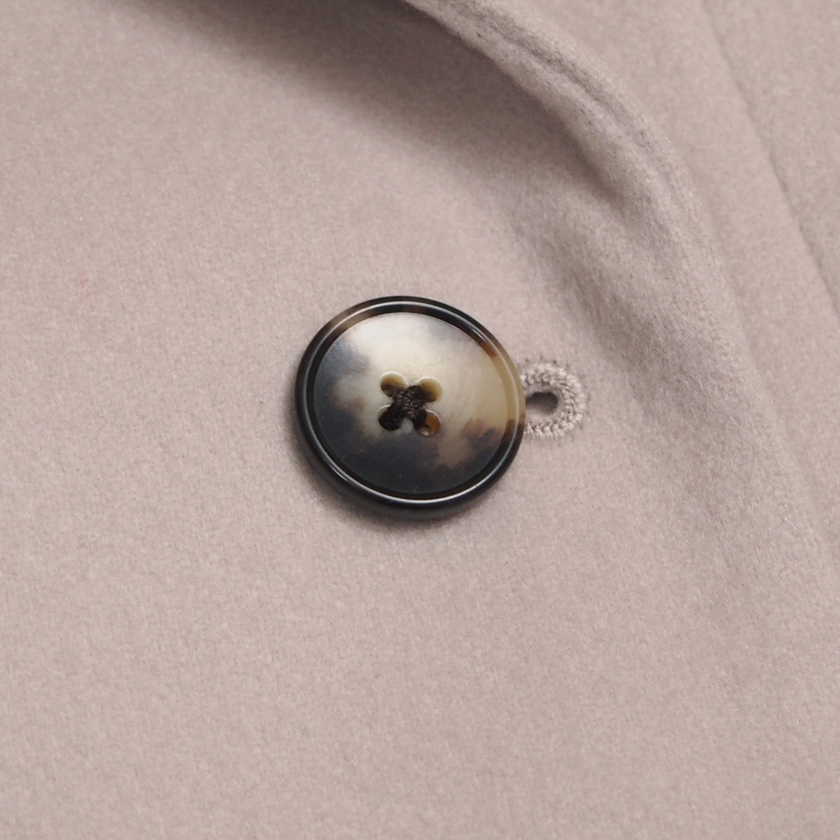 ウールにはない「ぬめり」のある感触で、カシミヤならではの上品な光沢感としなやかさが特徴。