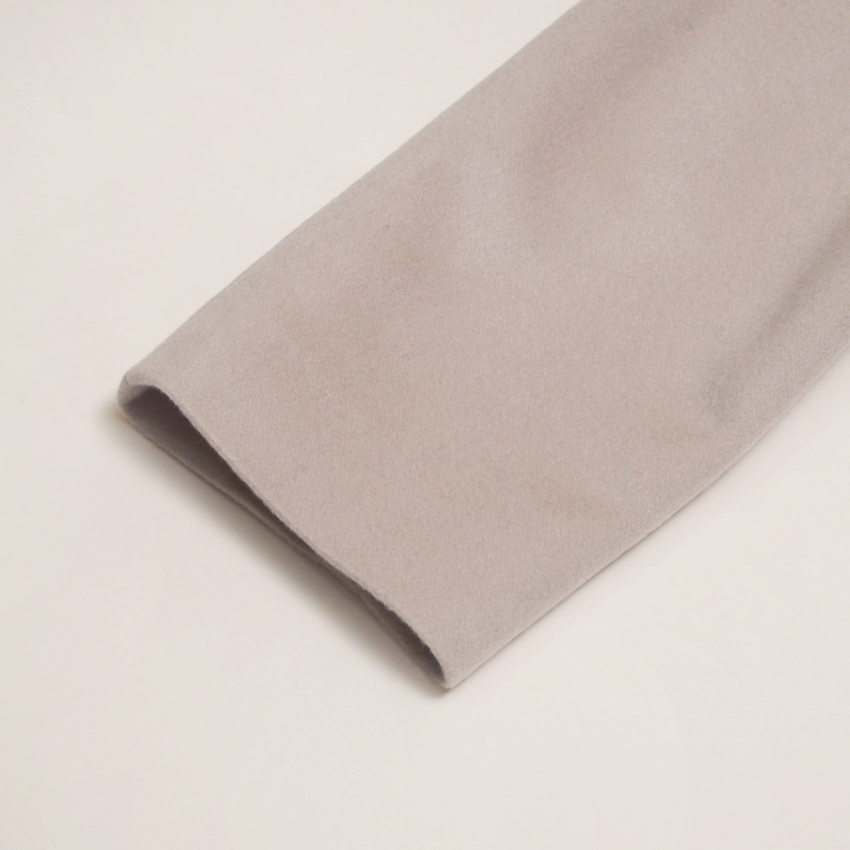 ウールにはない「ぬめり」のある感触で、カシミヤならではの上品な光沢感としなやかさが特徴。