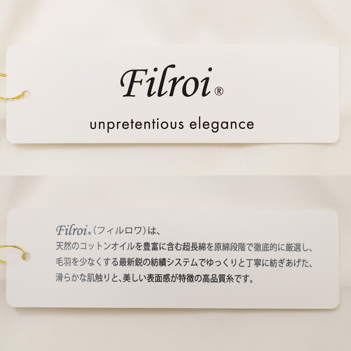 普通の超長綿(スーピマコットンなど)に比べて天然のコットンオイルを豊富に含んでいる為しっとりとした風合い。