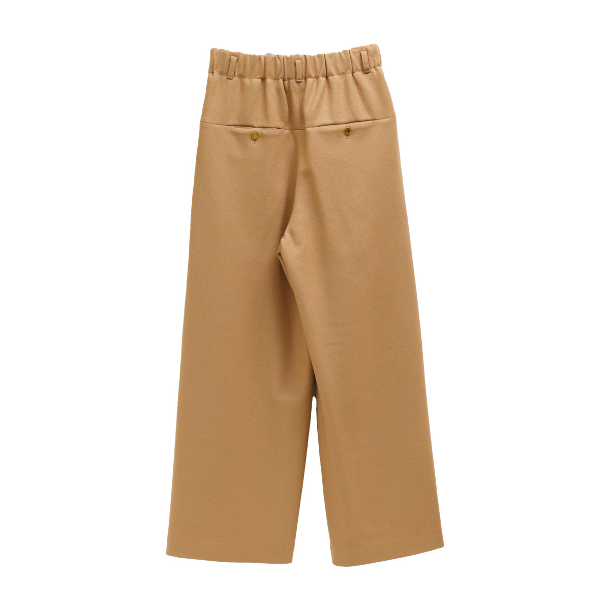 良質なウール原料を使用し、スケールオフ加工を施すことによりチクチク感のない肌触りなめらかなミルド天竺。
