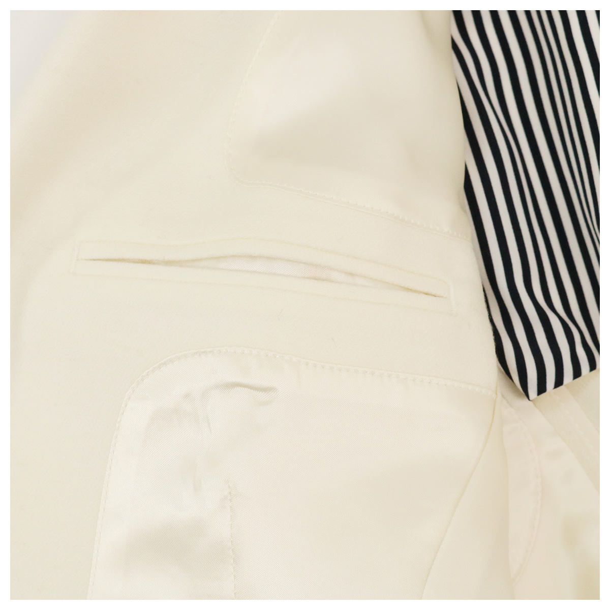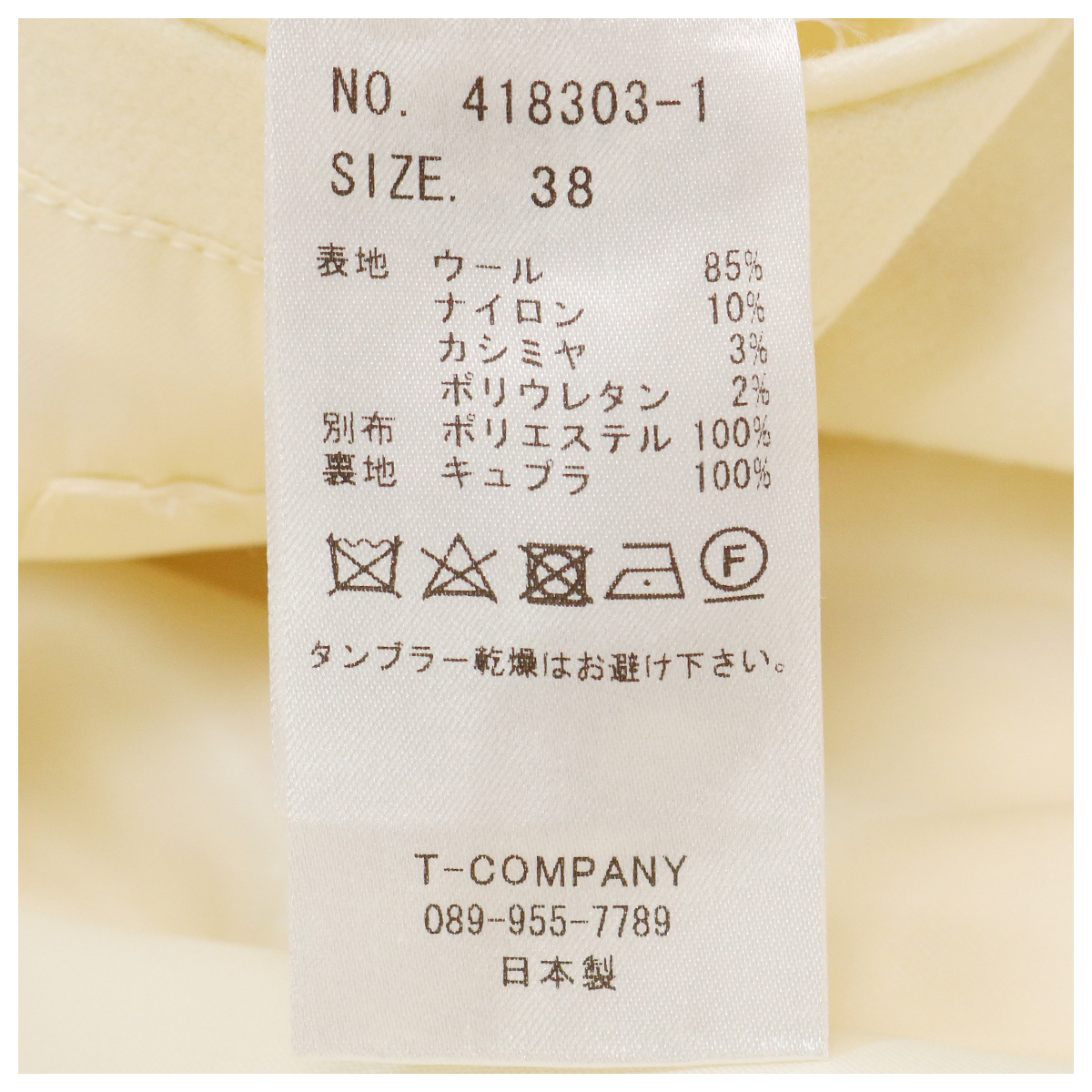 表地:ウール 85%、ナイロン 10%、カシミヤ 3%、ポリウレタン 2%