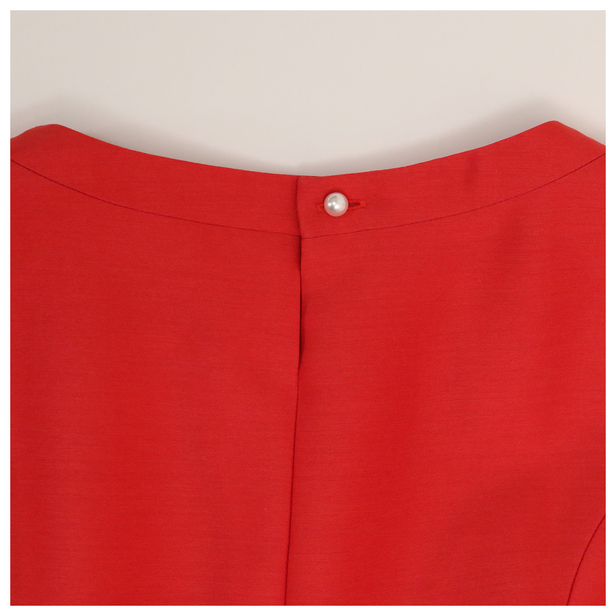 着脱:サイドファスナー約17cm、バック襟元スリット約9cm・ボタン