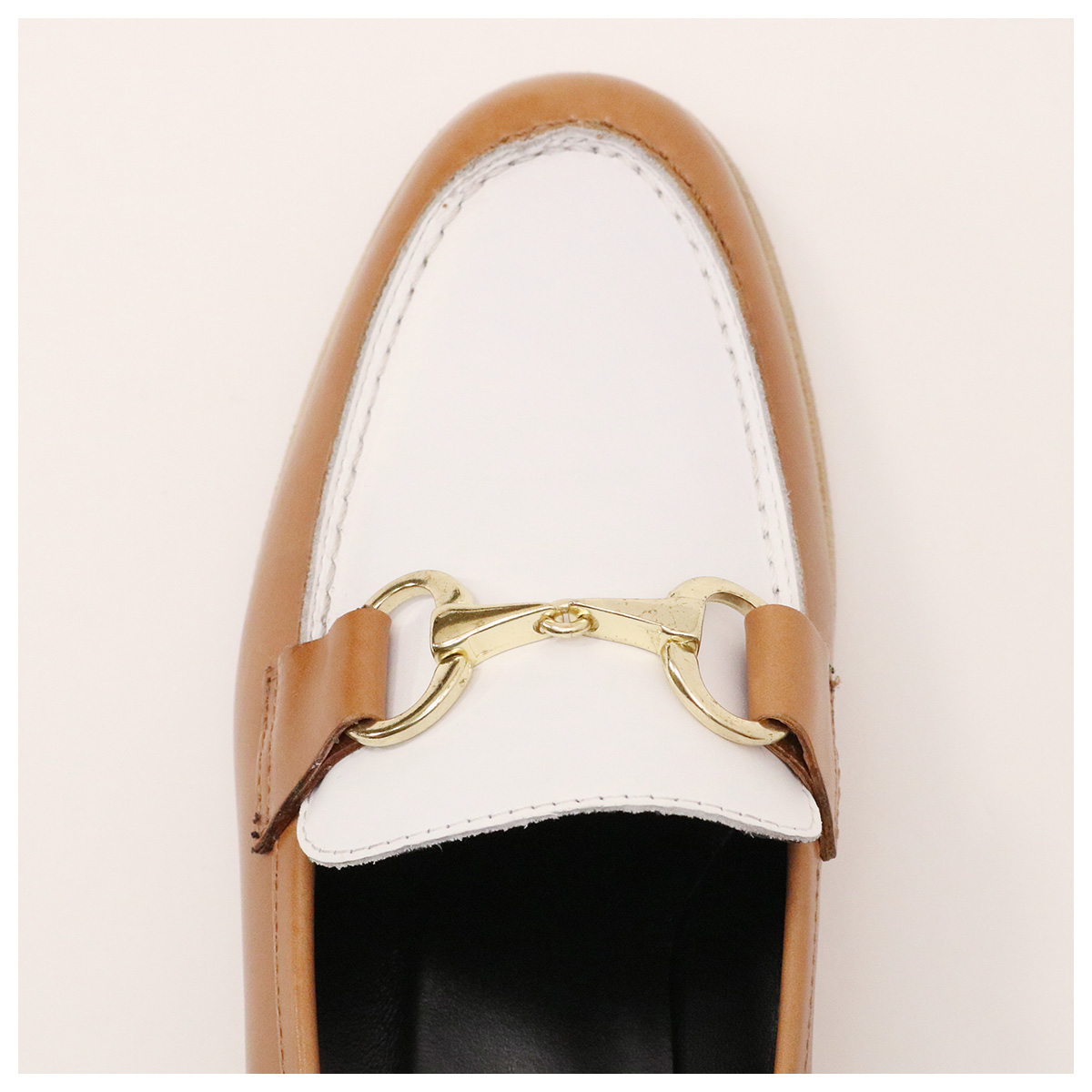 バイカラーレザービットローファー BIANCO×BRANDY ホワイト×ブラウン【Luca Grossi(ルカグロッシ)】