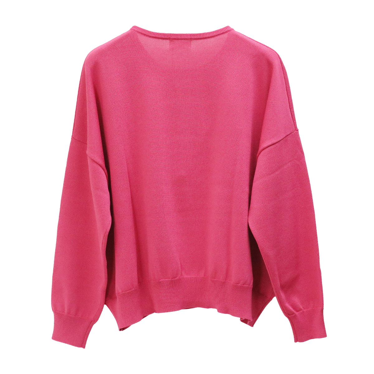 ショート丈クルーネック5分袖ニットトップス 72 チェリーピンク【Fleur de lis(フラデリ)】
