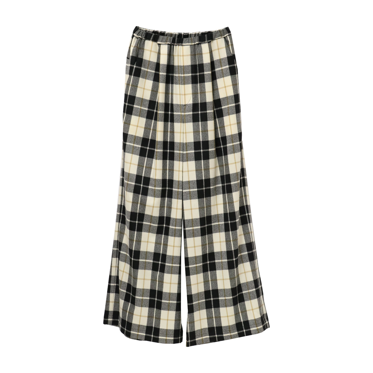 サキソニーストレッチウールイージーワイドパンツ 022 アイボリー系タータンチェック【Fleur de lis(フラデリ)】