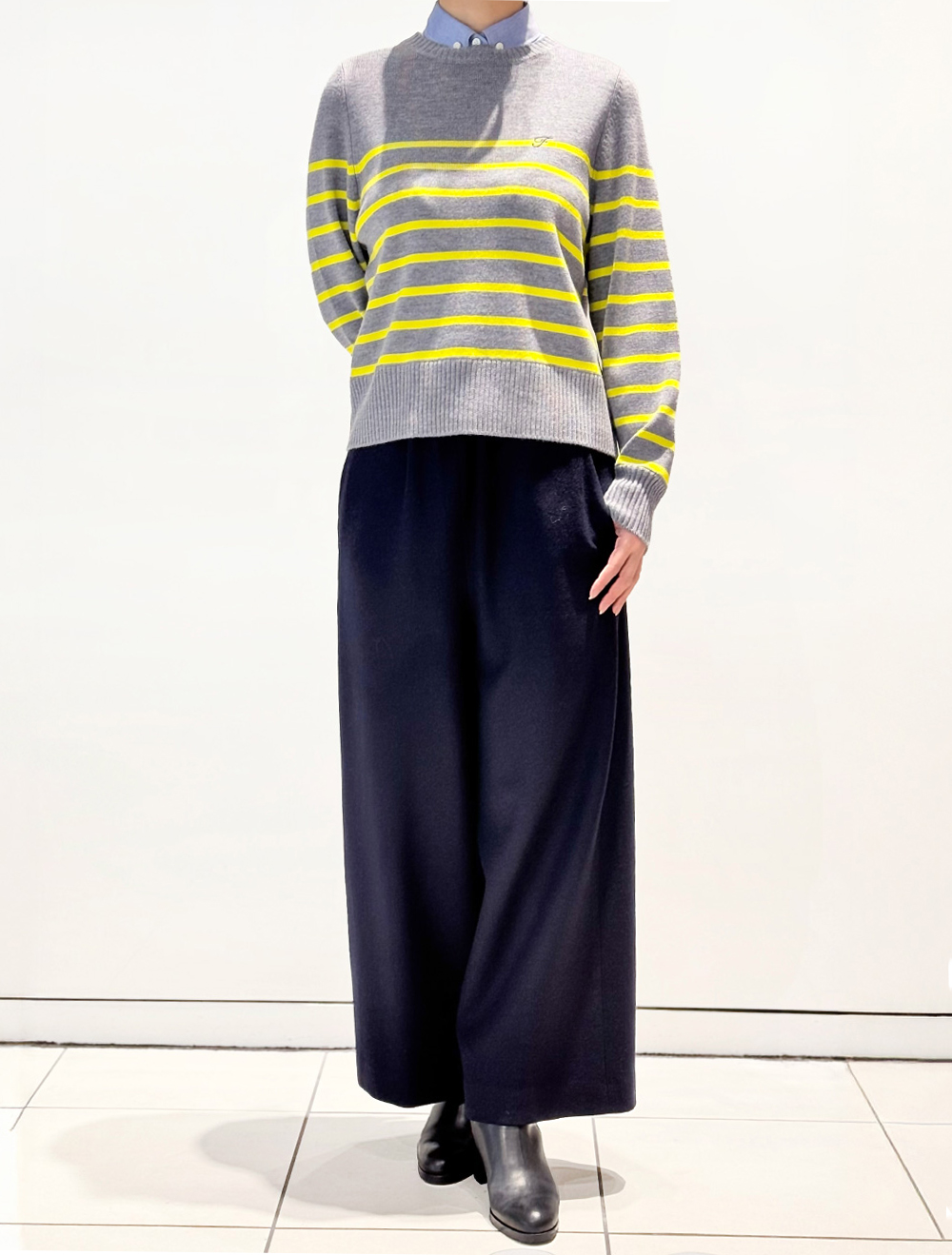 ウール混クルーネックニットトップス
