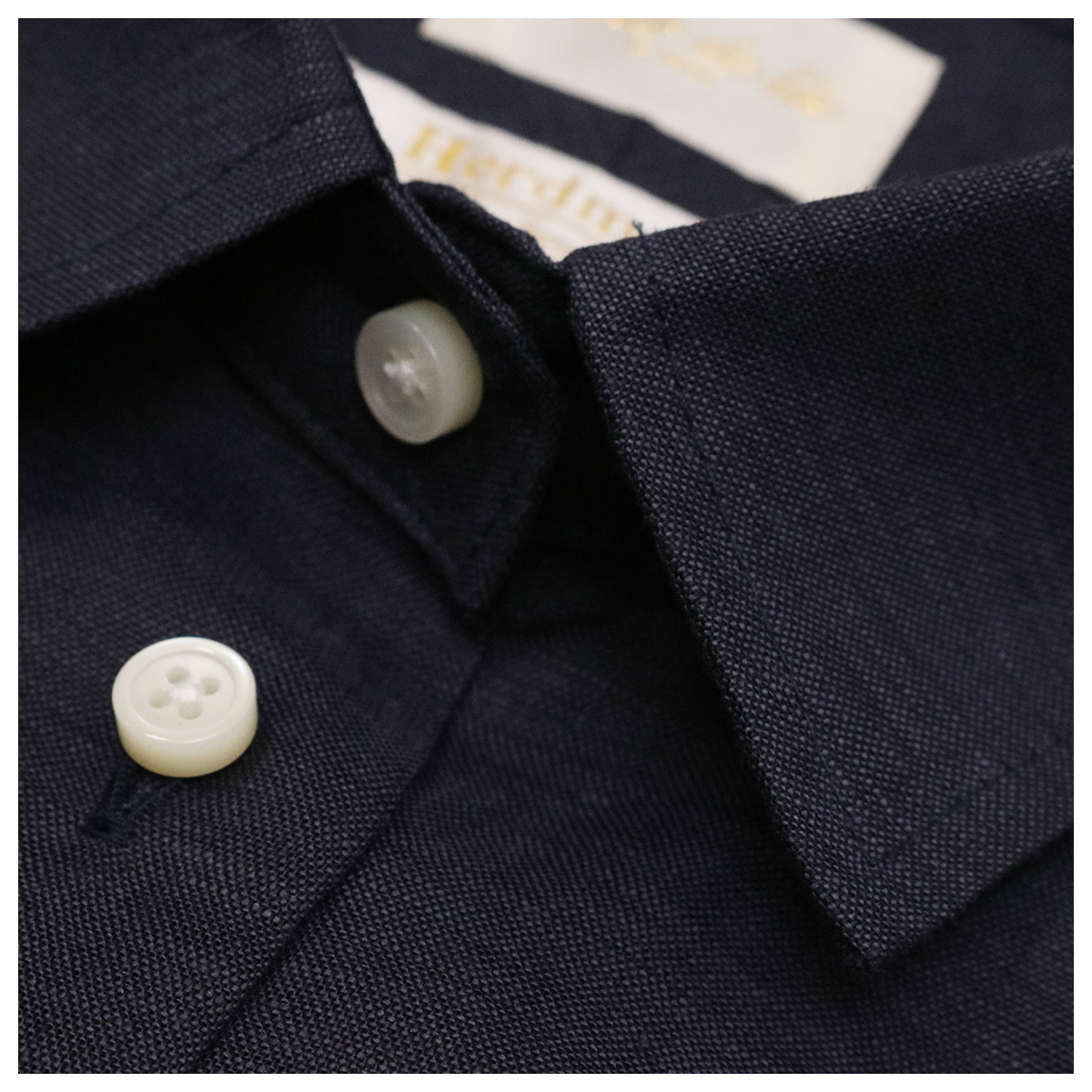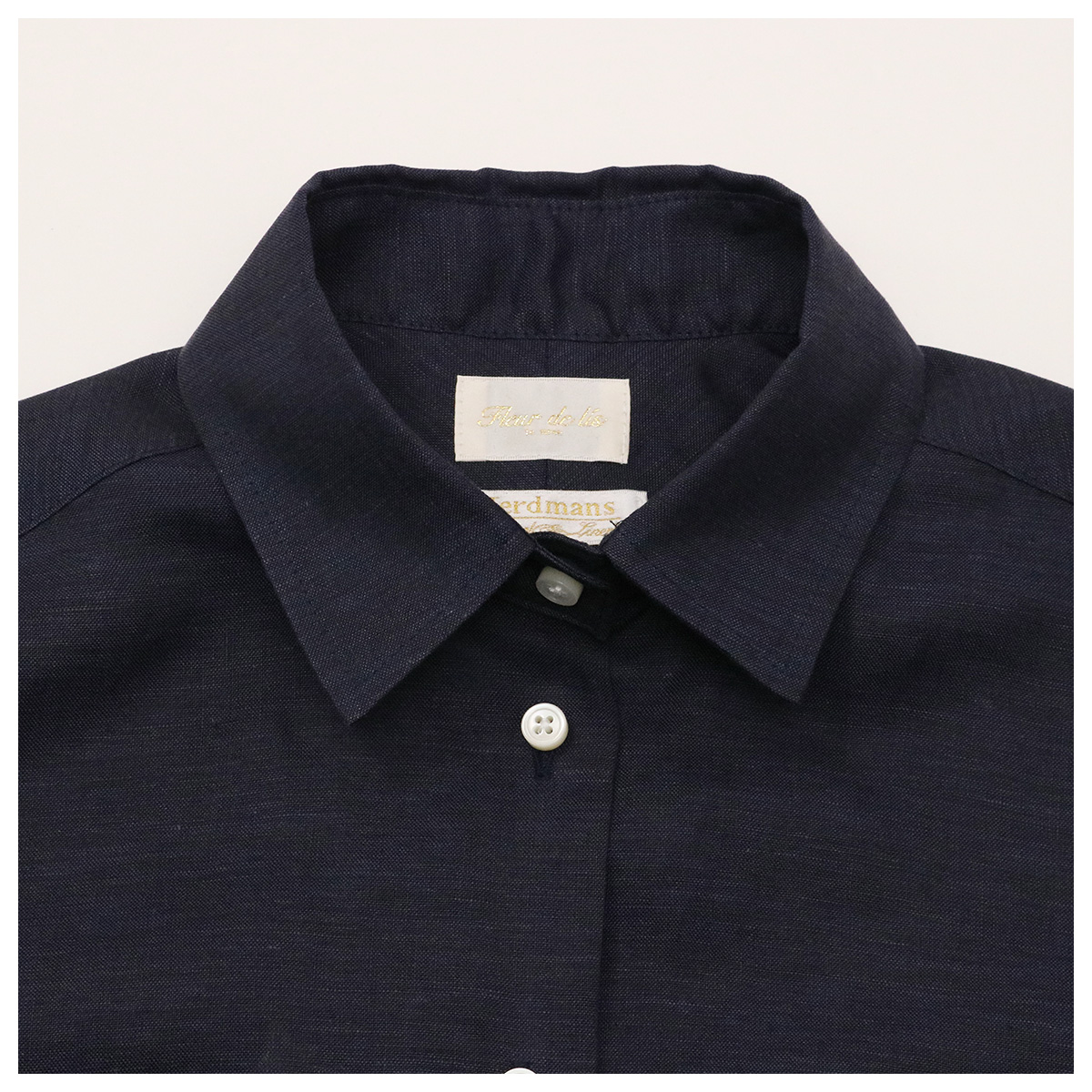 ハードマンズリネン角襟7分袖シャツ 86 ネイビー【Fleur de lis(フラデリ)】