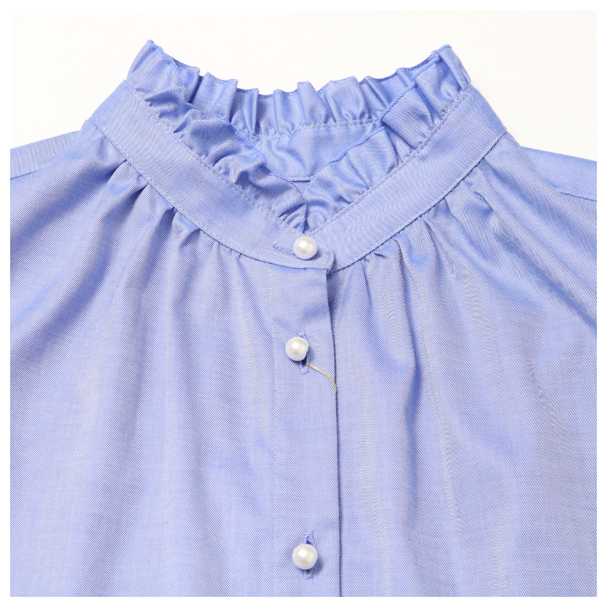 パール釦フリルネックブラウス 92 ブルー【Fleur de lis(フラデリ)】