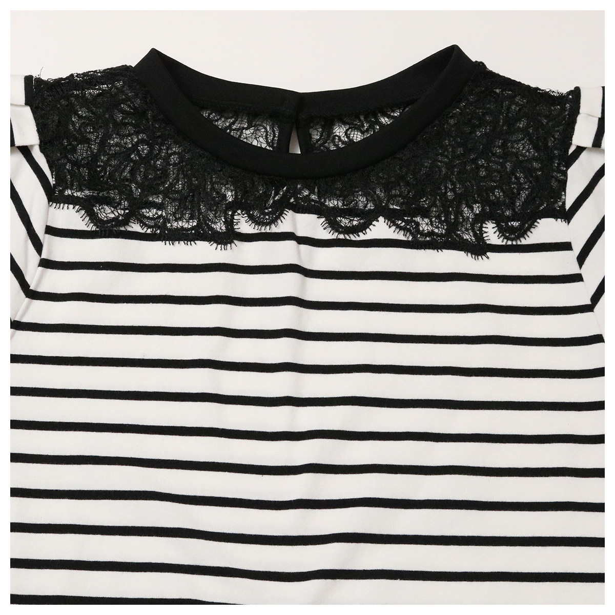 タック袖レーススムースプルオーバー D オフホワイト×ブラック【BEATRICE(ベアトリス)】