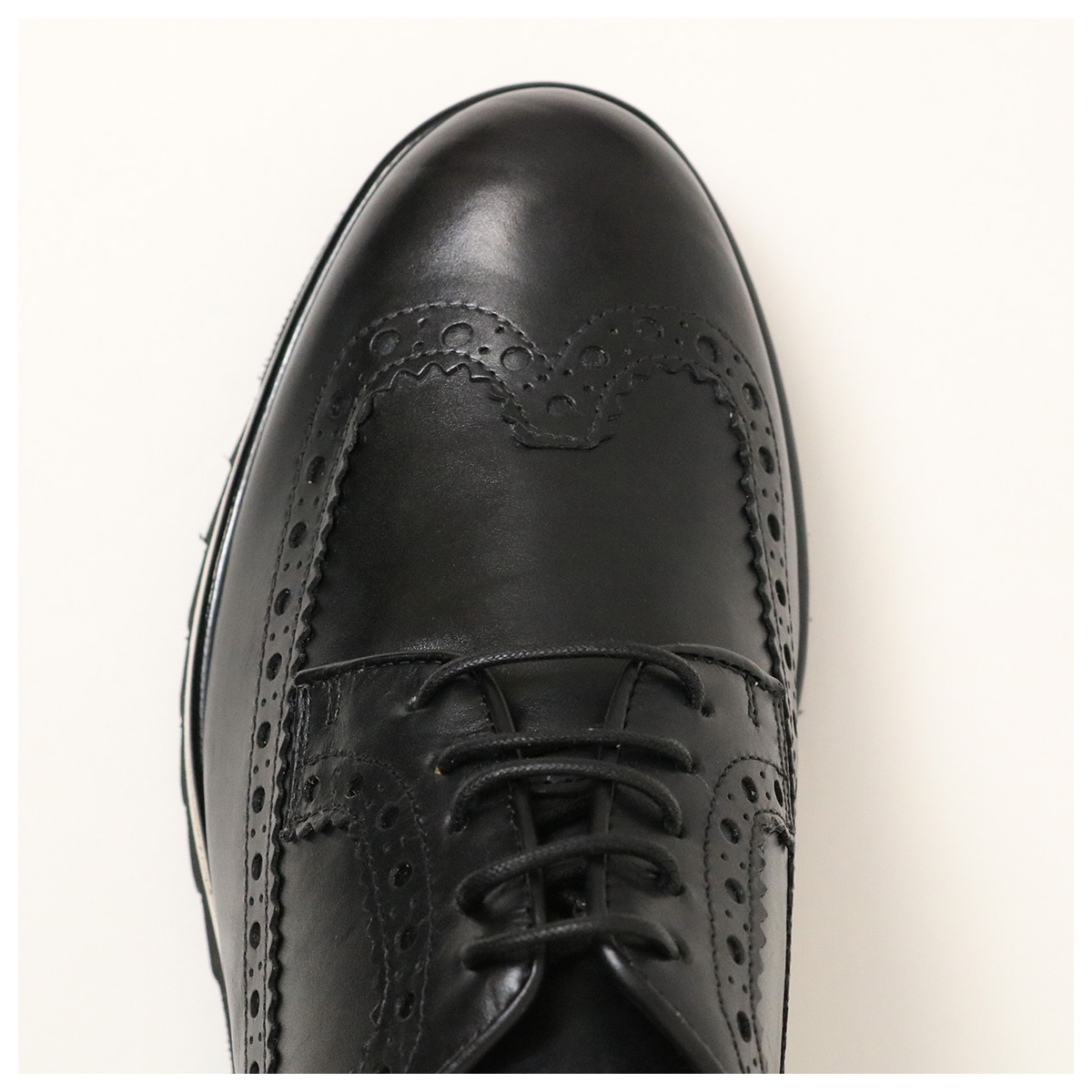 厚底レザーウィングチップシューズ NERO ブラック【Luca Grossi(ルカグロッシ)】