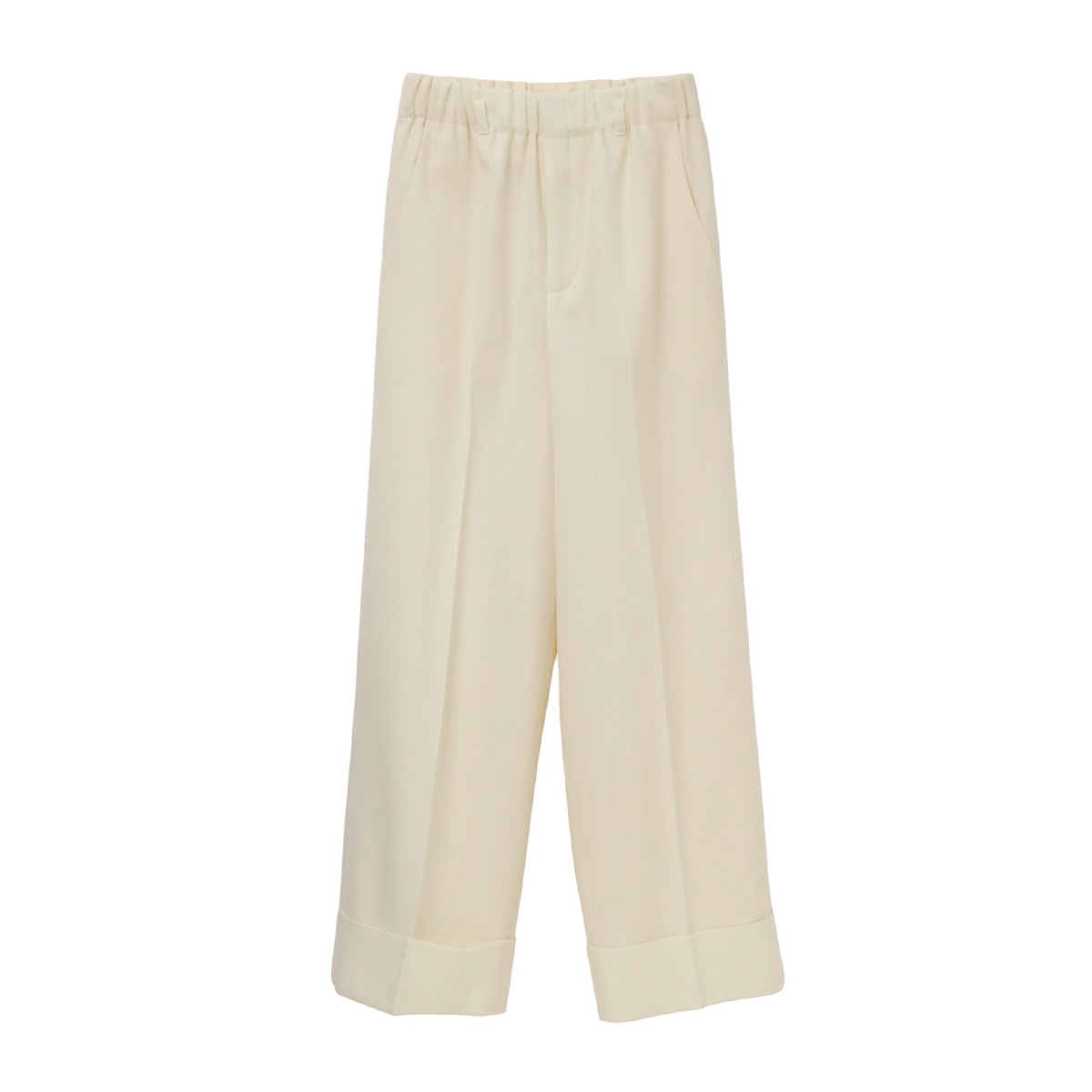 ハイカウントフラノ 裾ダブルワイドパンツ 01 オフホワイト【Fleur de lis(フラデリ)】
