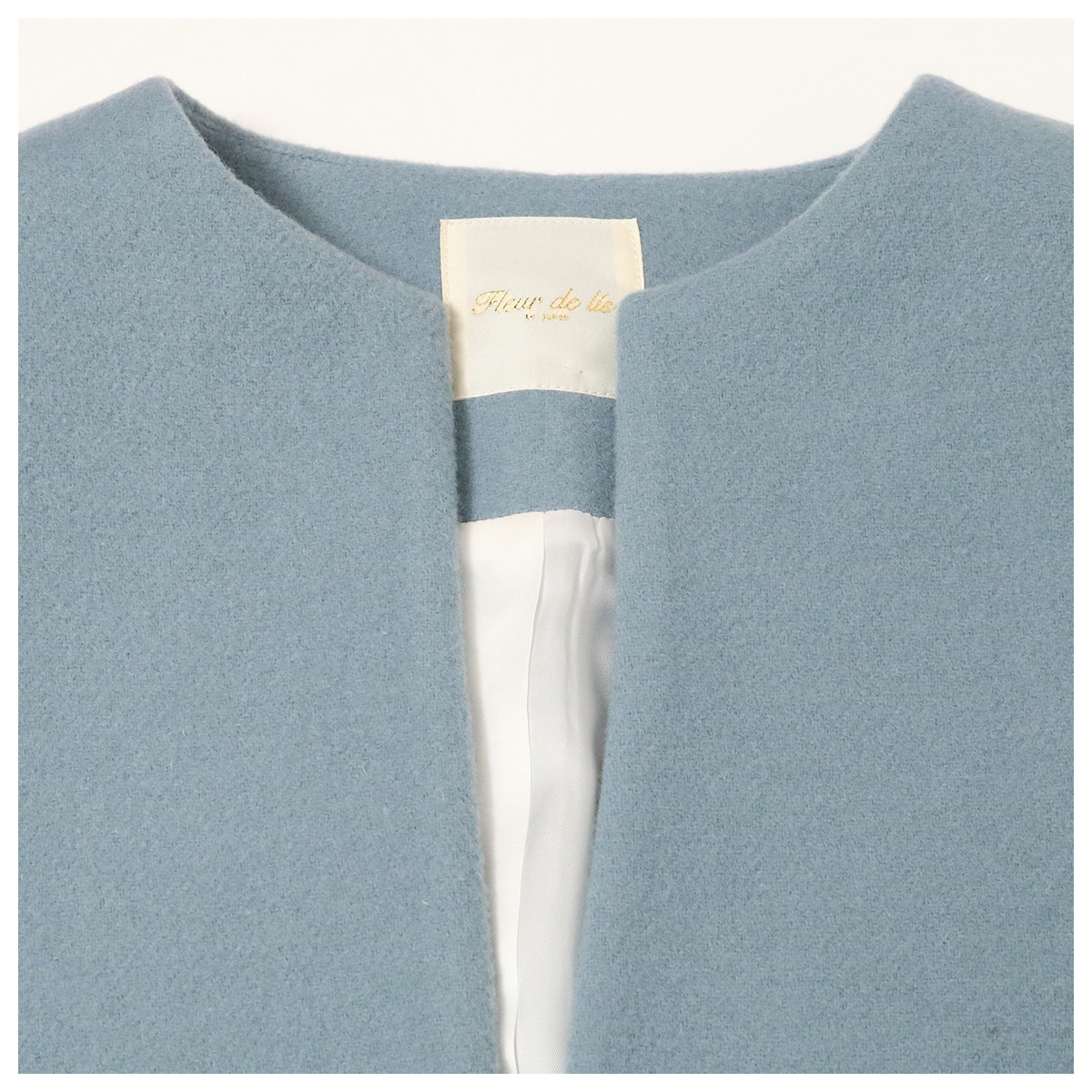 ヴァージンウールダブルビーバー ノーカラーショートコート 92 ライトブルー【Fleur de lis(フラデリ)】