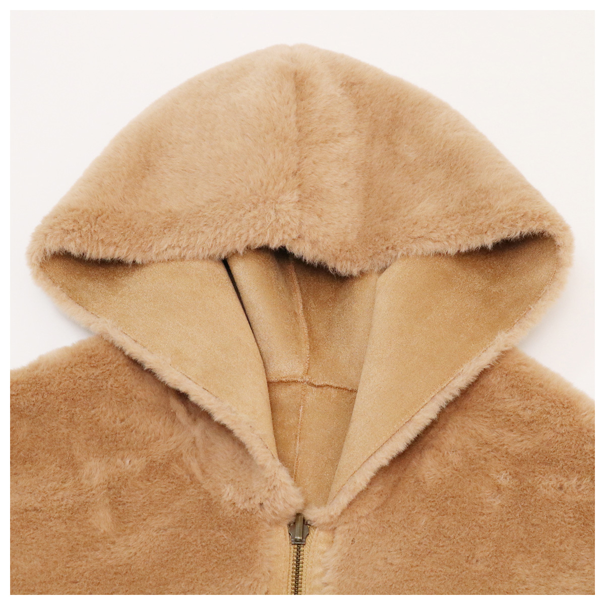 リバーシブル フェイクムートンフードコート 35 モカ【Dignite collier(ディニテコリエ)】