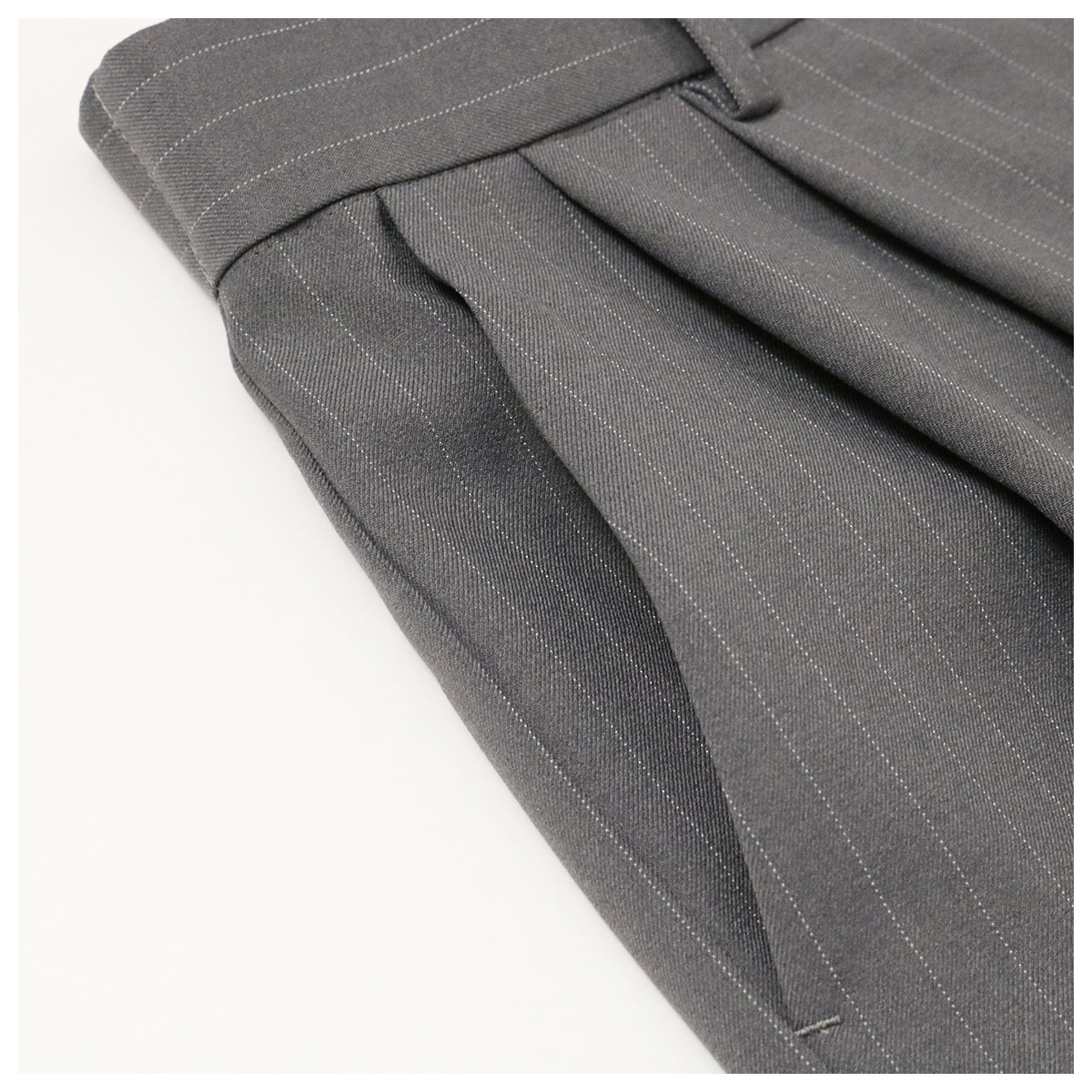 梳毛調シック&シンワイドテーパードパンツ A グレーストライプ【MyLanka(ミランカ)】