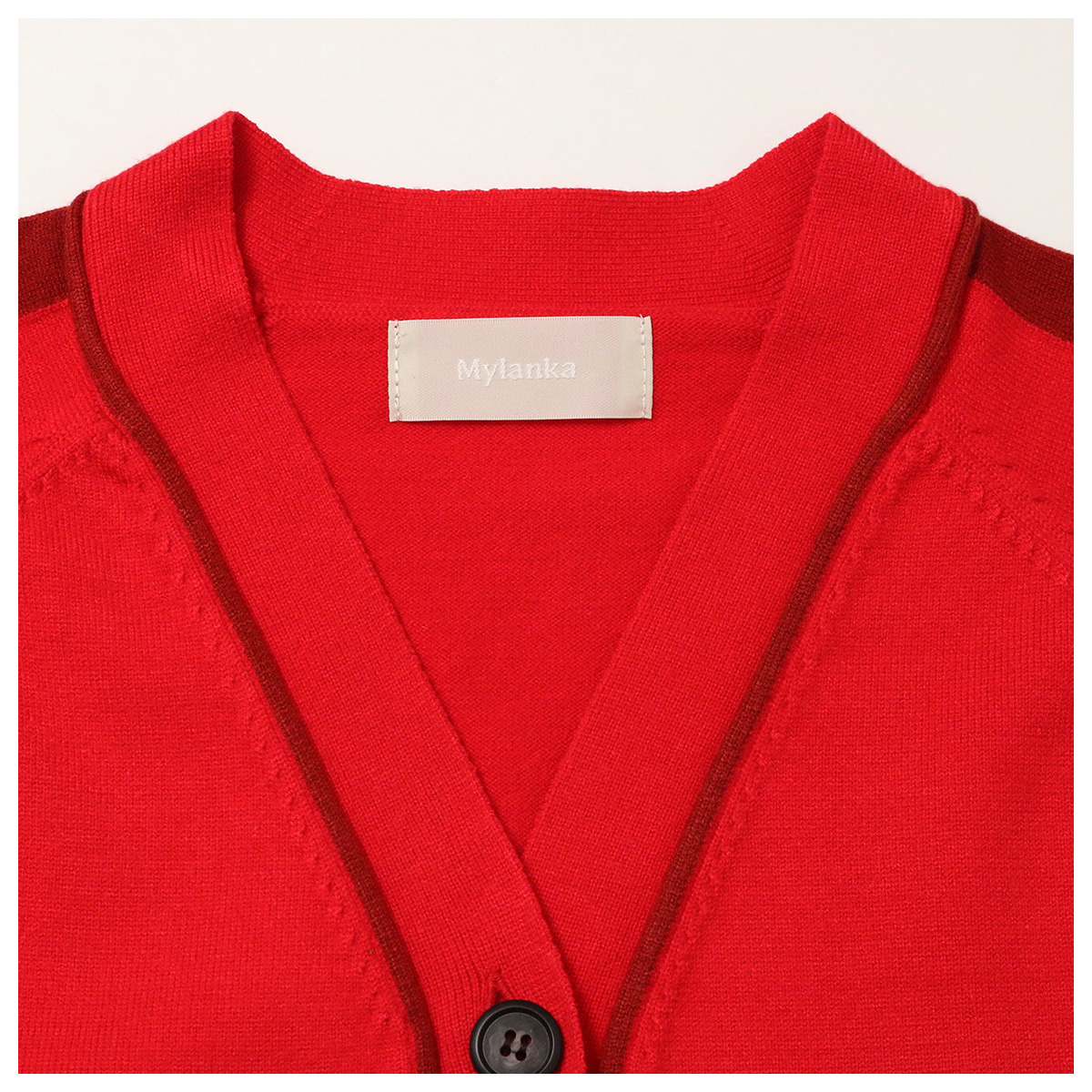 配色ラインVネックカーディガン B レッド【MyLanka(ミランカ)】
