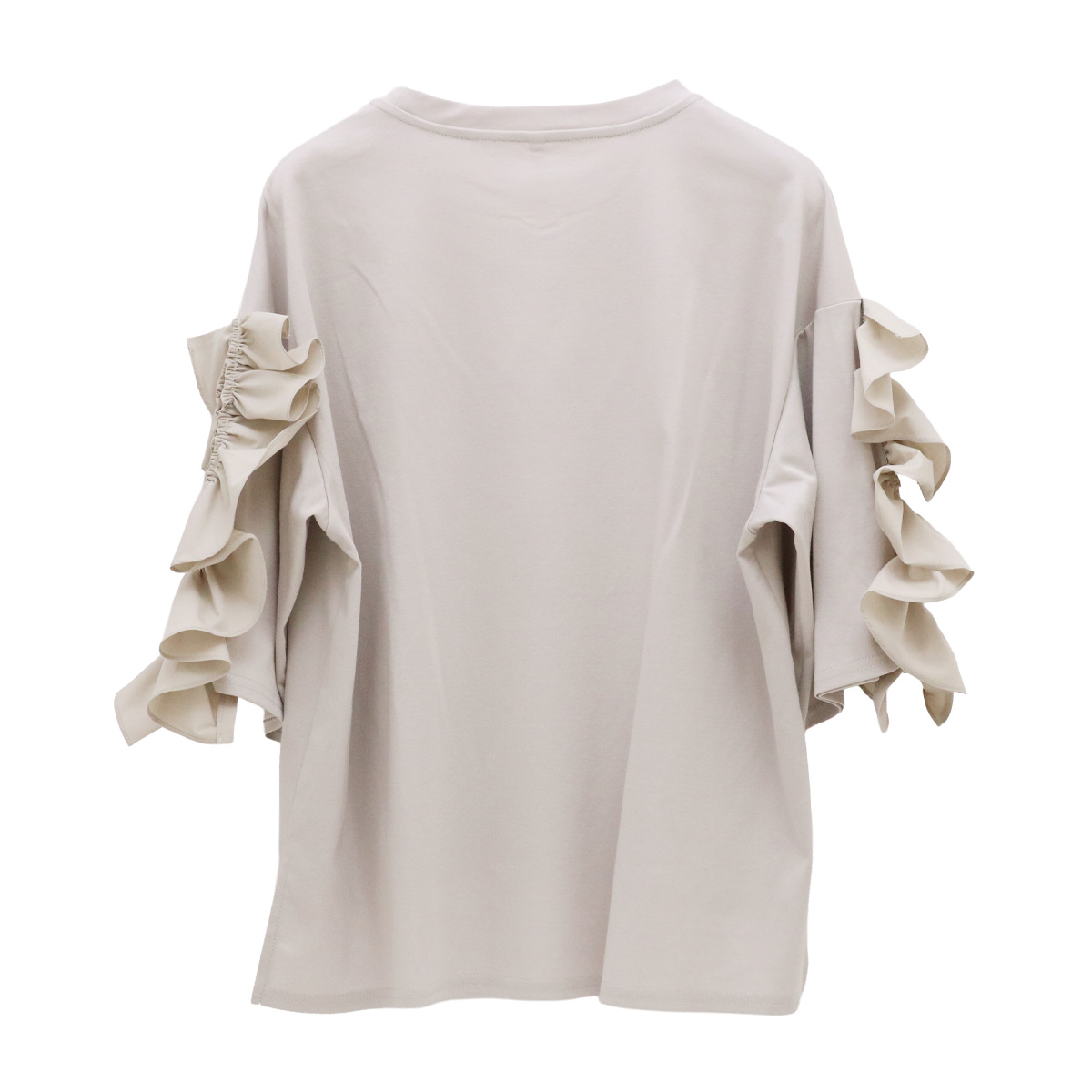 袖フリルTシャツ 34 グレージュ【Dignite collier(ディニテコリエ)】
