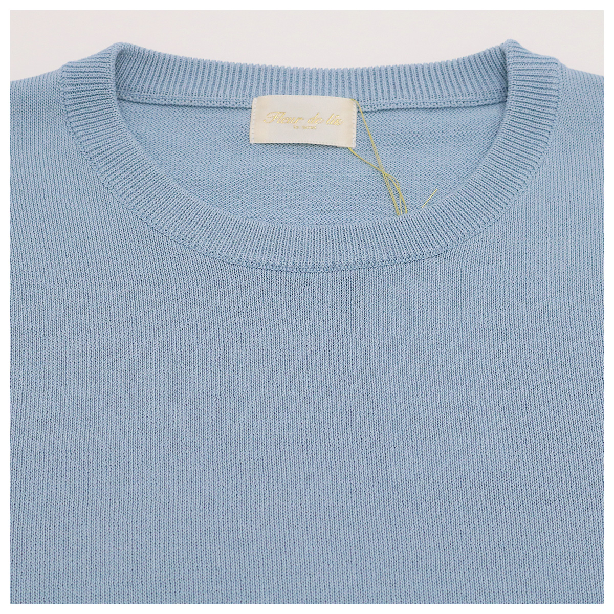 ショート丈クルーネック5分袖ニットトップス 92 ライトブルー【Fleur de lis(フラデリ)】