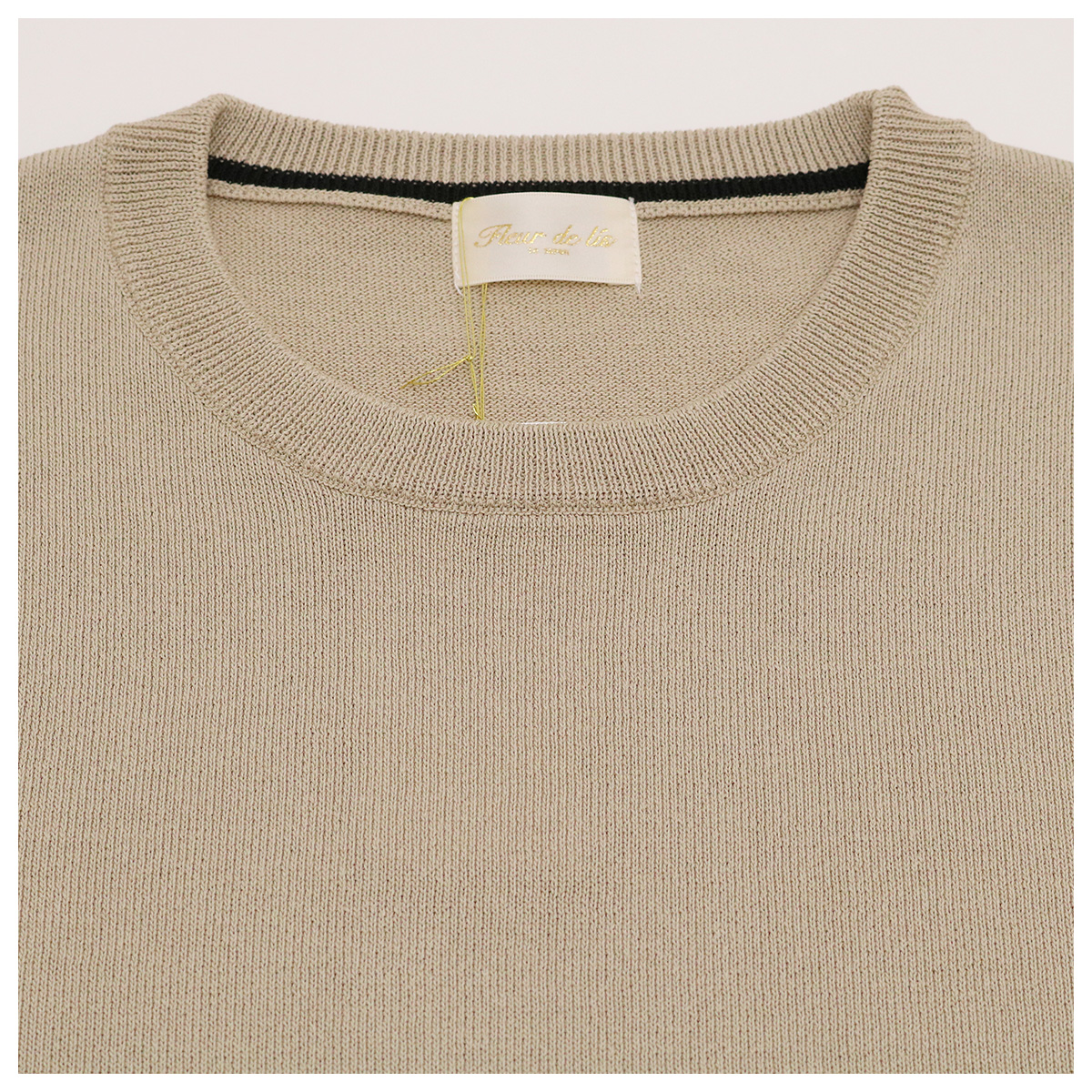 ショート丈クルーネック5分袖ニットトップス 51 ベージュ【Fleur de lis(フラデリ)】