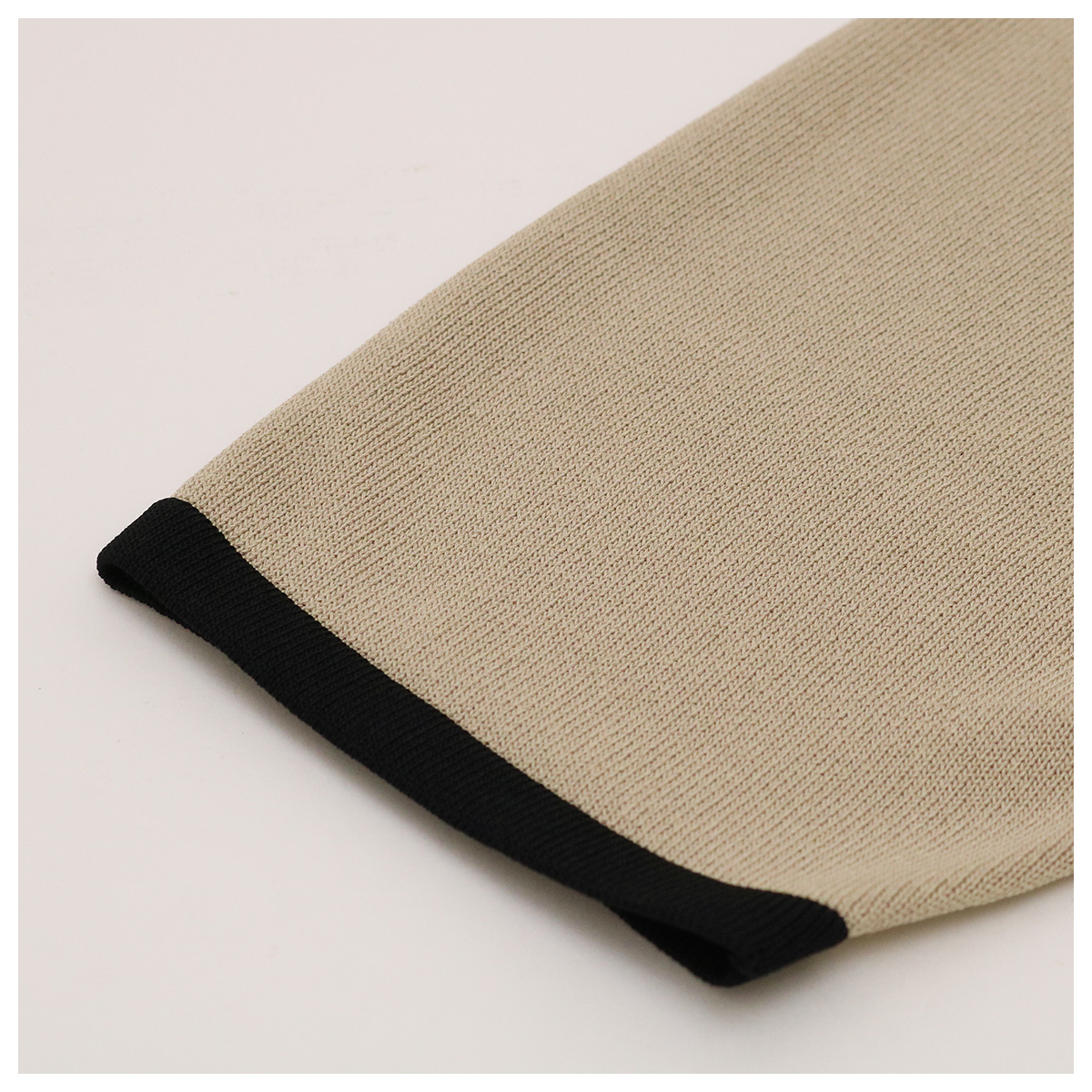 ショート丈クルーネック5分袖配色ニットトップス 51×19 ベージュ×ブラック【Fleur de lis(フラデリ)】