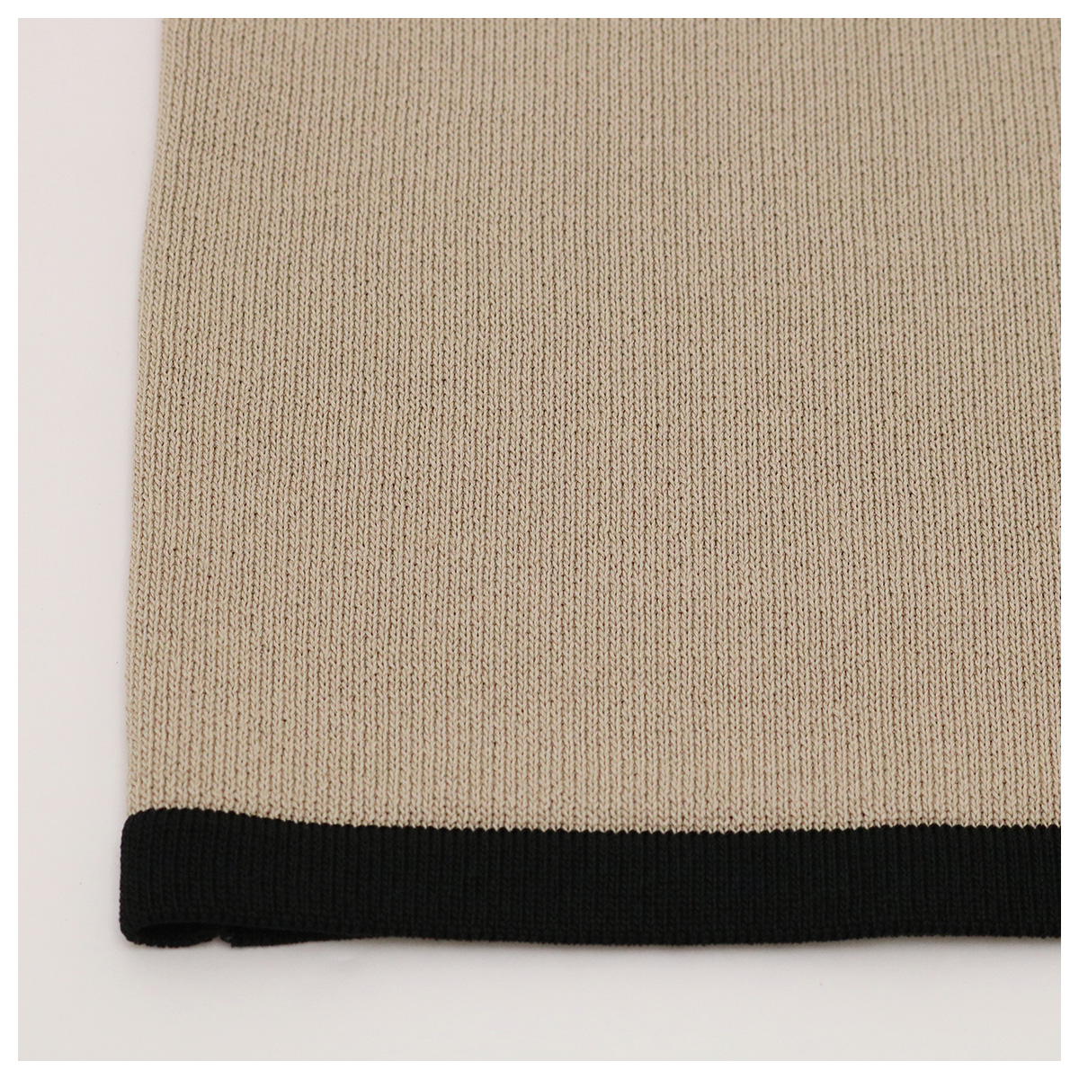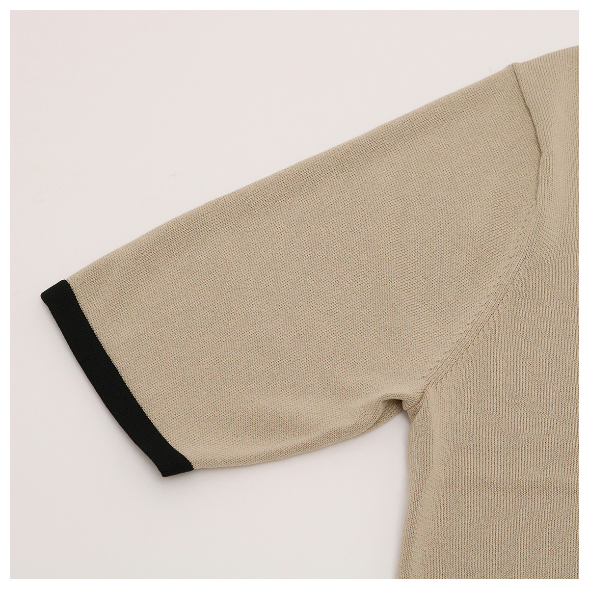 ショート丈クルーネック5分袖配色ニットトップス 51×19 ベージュ×ブラック【Fleur de lis(フラデリ)】