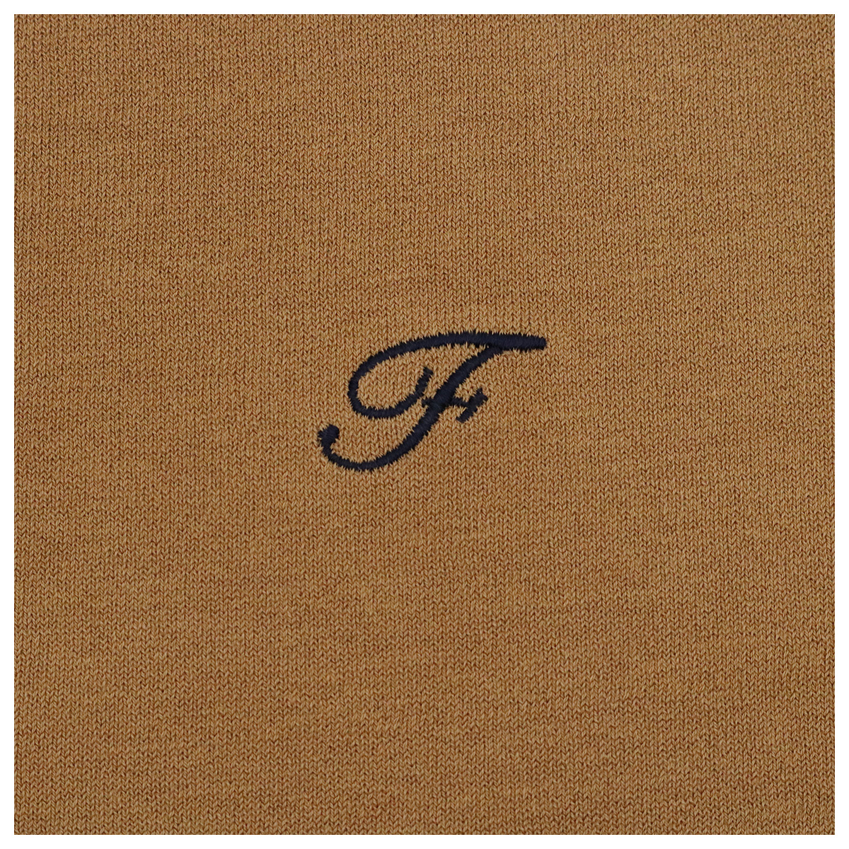 コットン混クルーネックラグラン5分袖配色ニットトップス 54×91 キャメル×ネイビー【Fleur de lis(フラデリ)】