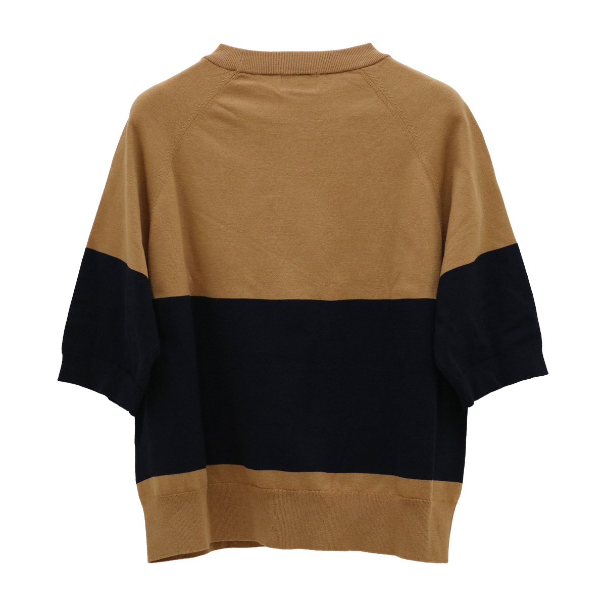 コットン混クルーネックラグラン5分袖配色ニットトップス 54×91 キャメル×ネイビー【Fleur de lis(フラデリ)】