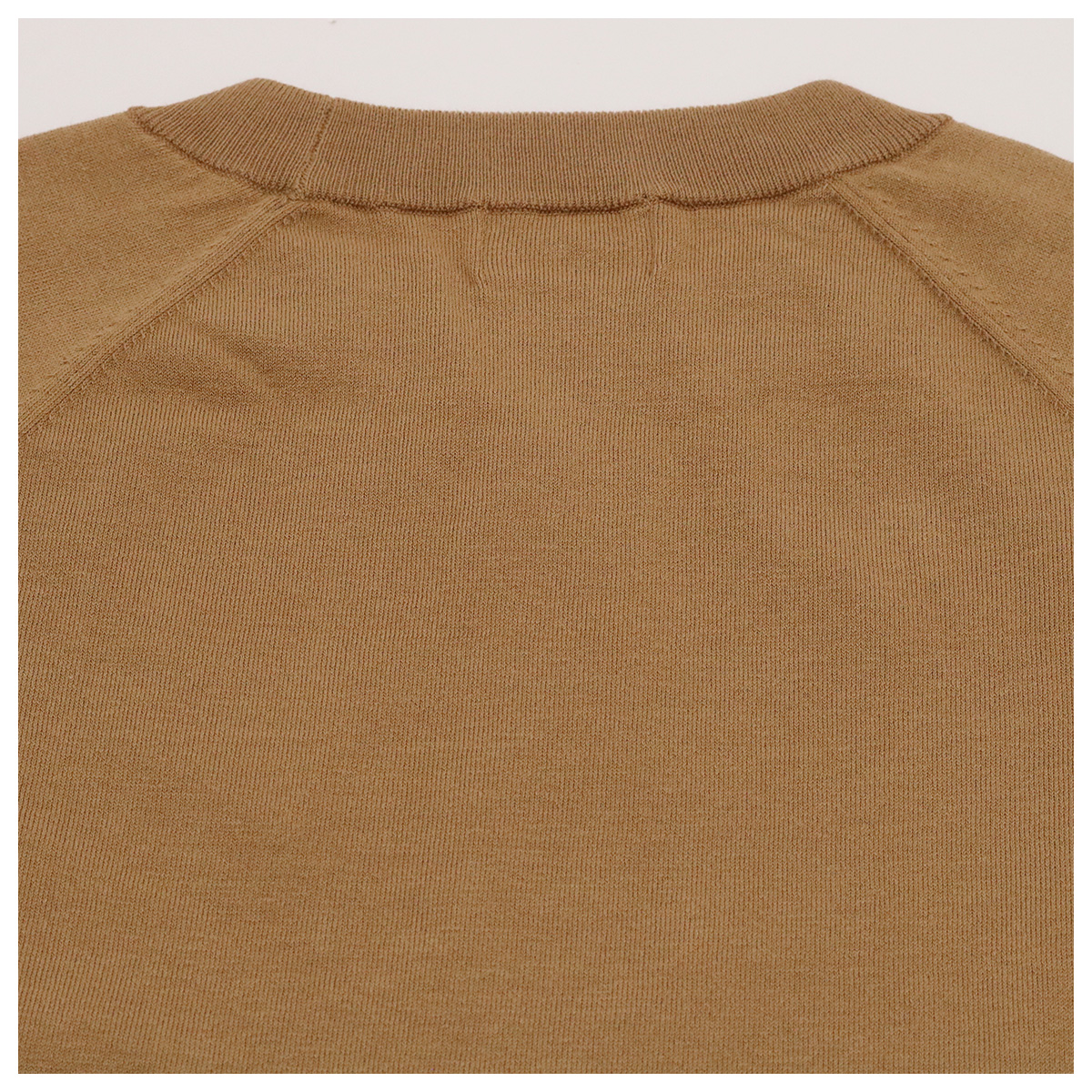 コットン混クルーネックラグラン5分袖ニットトップス 54 キャメル【Fleur de lis(フラデリ)】