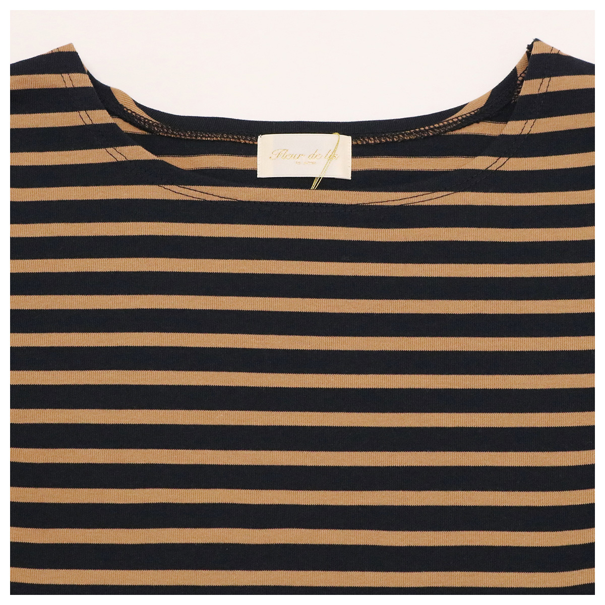 コットンボートネックボーダーカットソー 91×01 ネイビー×オフホワイト【Fleur de lis(フラデリ)】